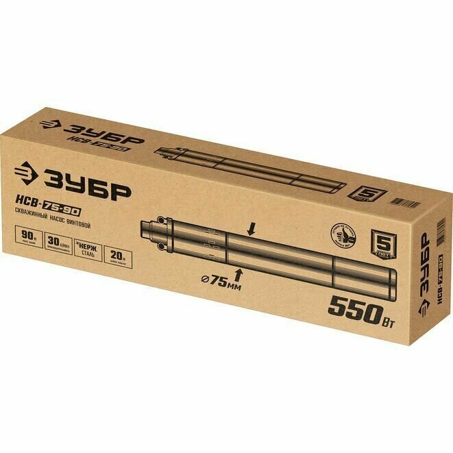 ЗУБР 550 Вт, 90 м напор, скважинный насос винтовой, корпус из нержавеющей стали (НСВ-75-90)