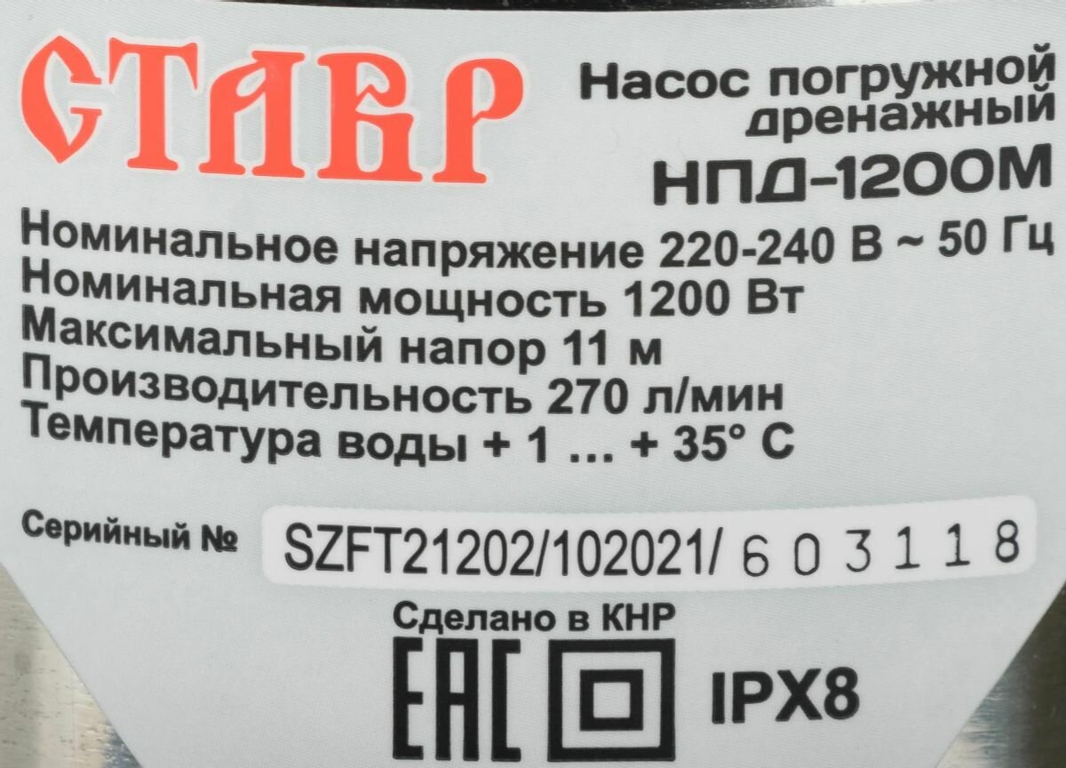 Насос дренажный ставр НПД-1200М