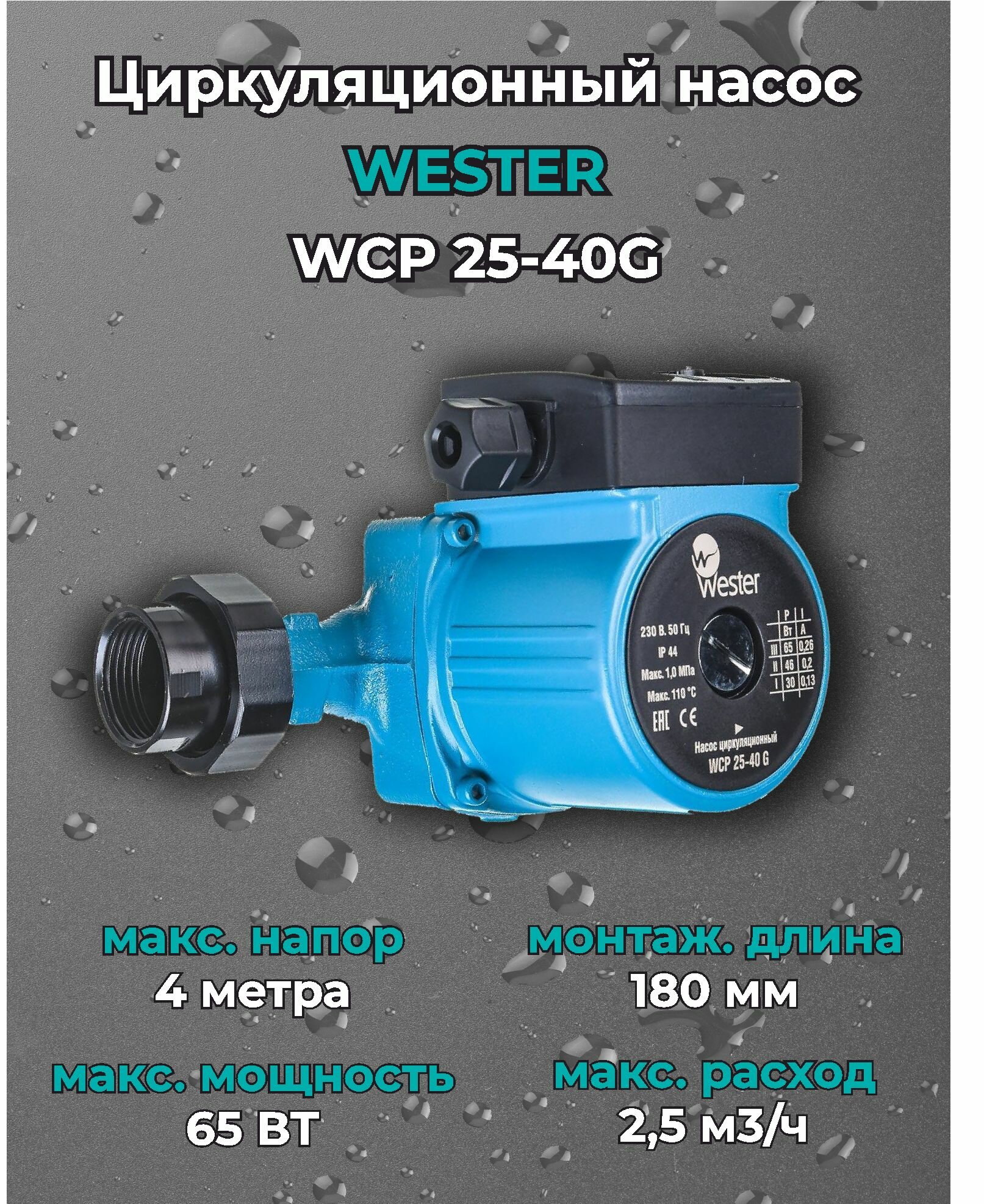 Насос циркуляционный Wester WCP 32-40G 180 мм (с гайками)