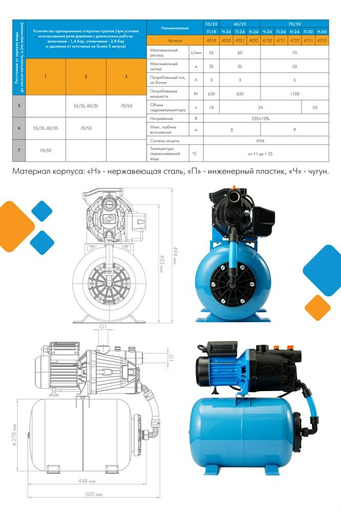 Поверхностный насос-автомат “джамбо“ 60/35 Ч-24, Джилекс