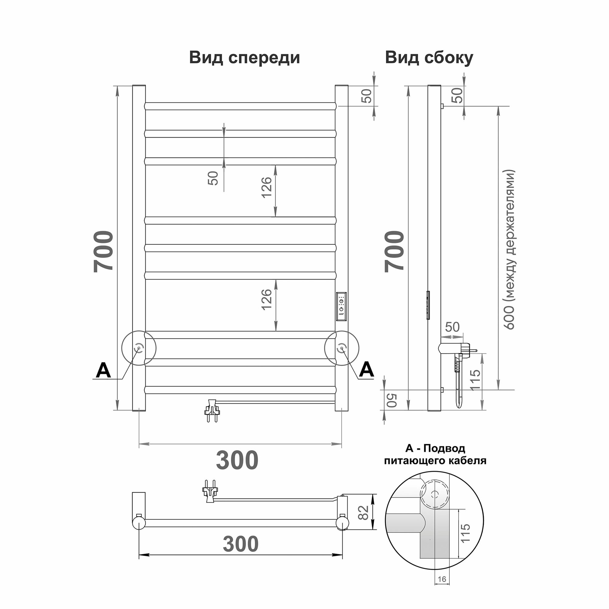 Полотенцесушитель электрический INDIGO Line Trinity 70/30 таймер, скрытый монтаж, универсальное подключение