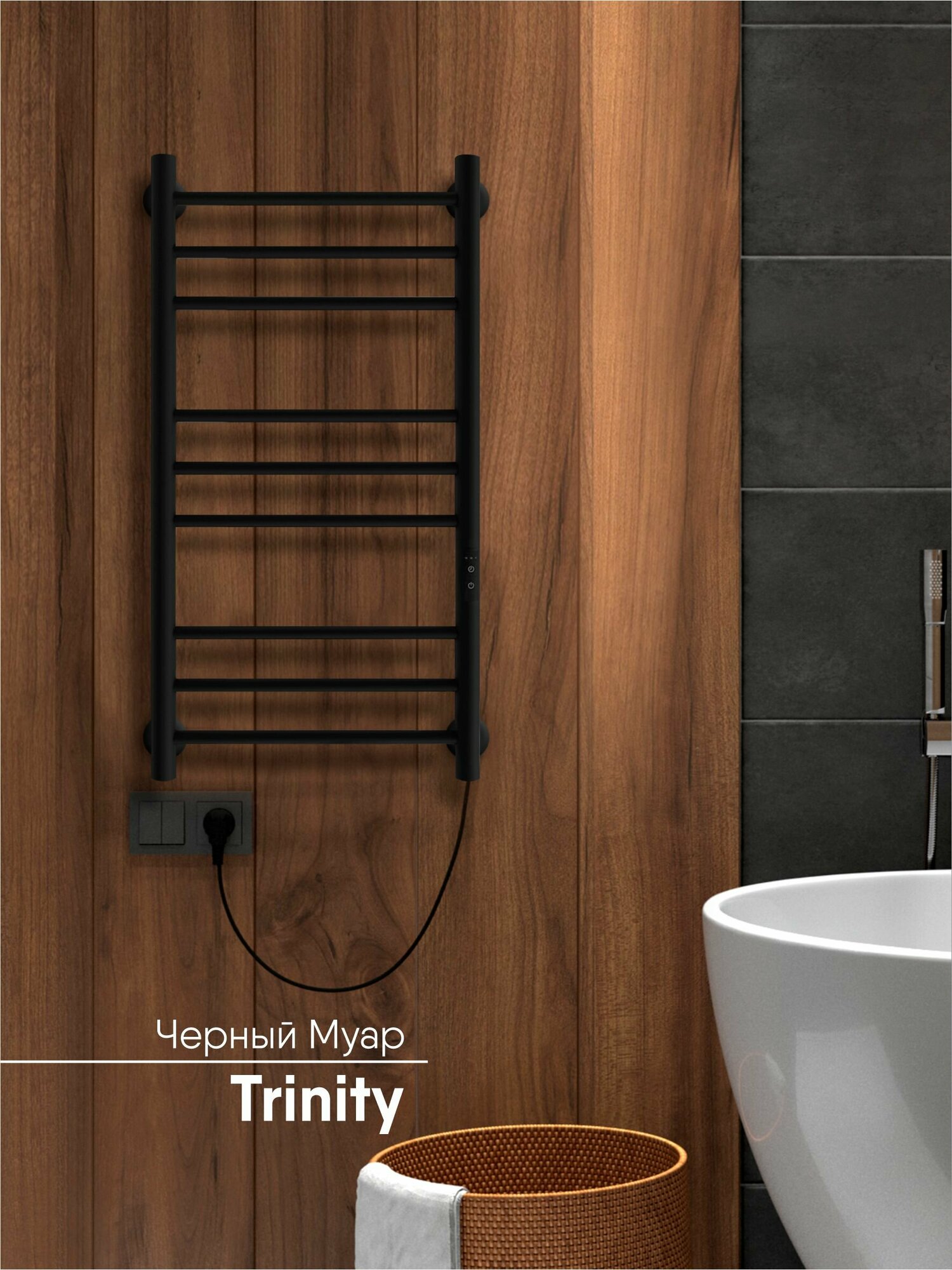 Полотенцесушитель электрический INDIGO Line Trinity 100/50 таймер, скрытый монтаж, универсальное подключение, Черный муар