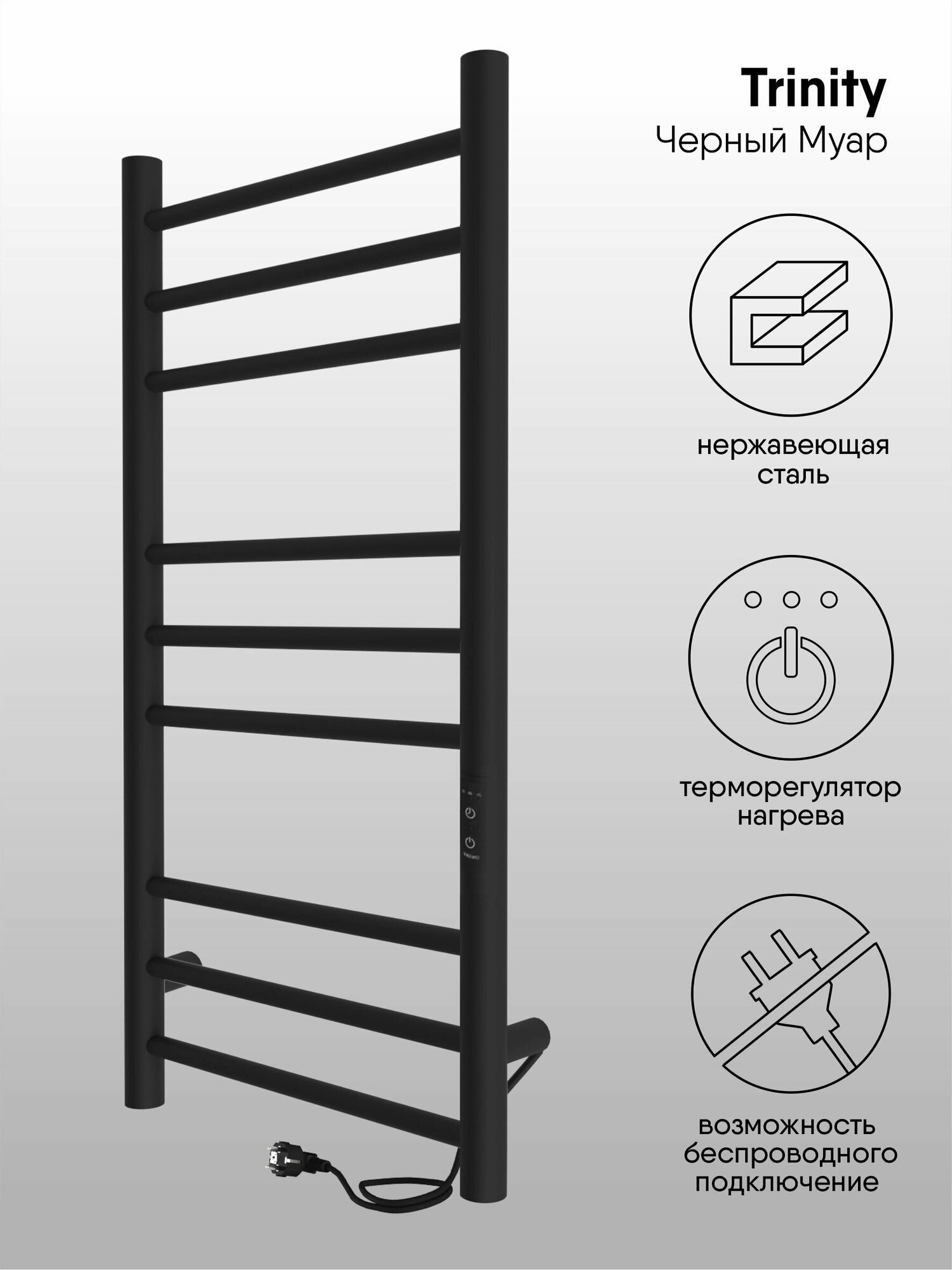 Полотенцесушитель электрический Indigo Line Trinity LСLTE100-50BRRt черный муар