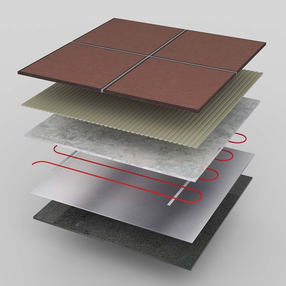 | Отзыв: | Стяжка в студии у меня уже была (черновая отделка). Я сделал план где что будет и начертил индивидуальную схему. А потом нарезал болгаркой каналы и вставил кабель, залил смесью. Уровень пола поднялся только на толщину плитки. |