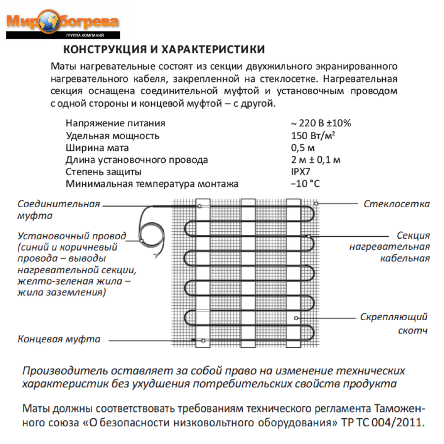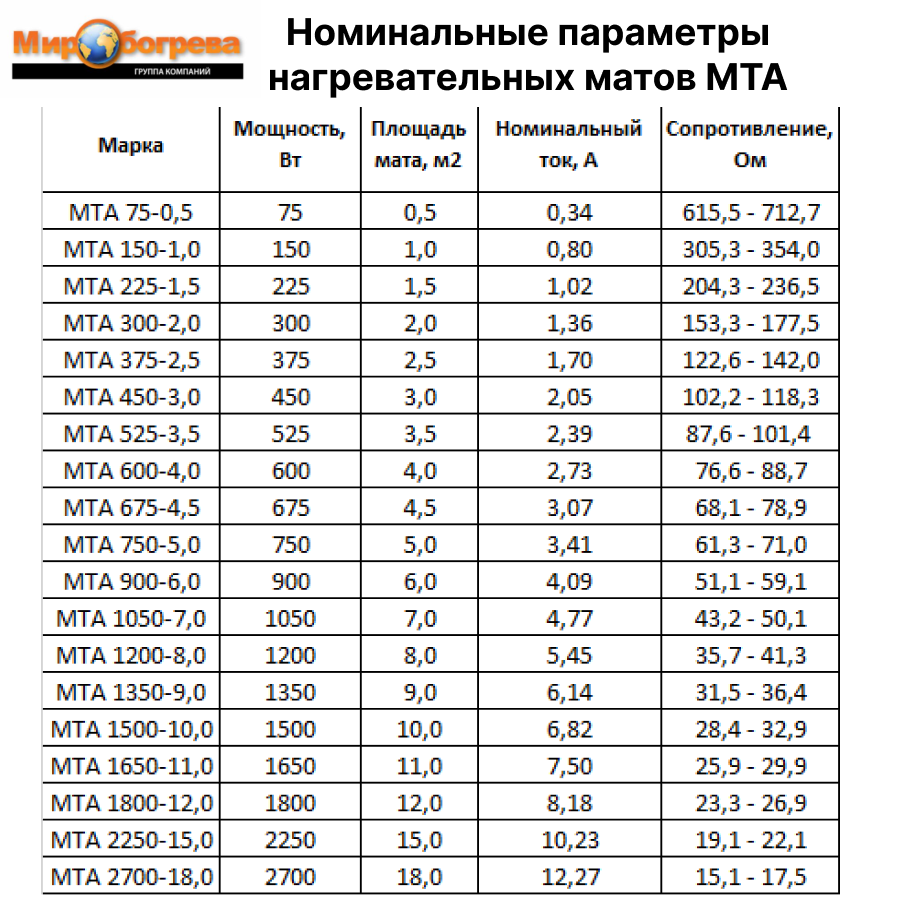 | Тип | нагревательный мат |