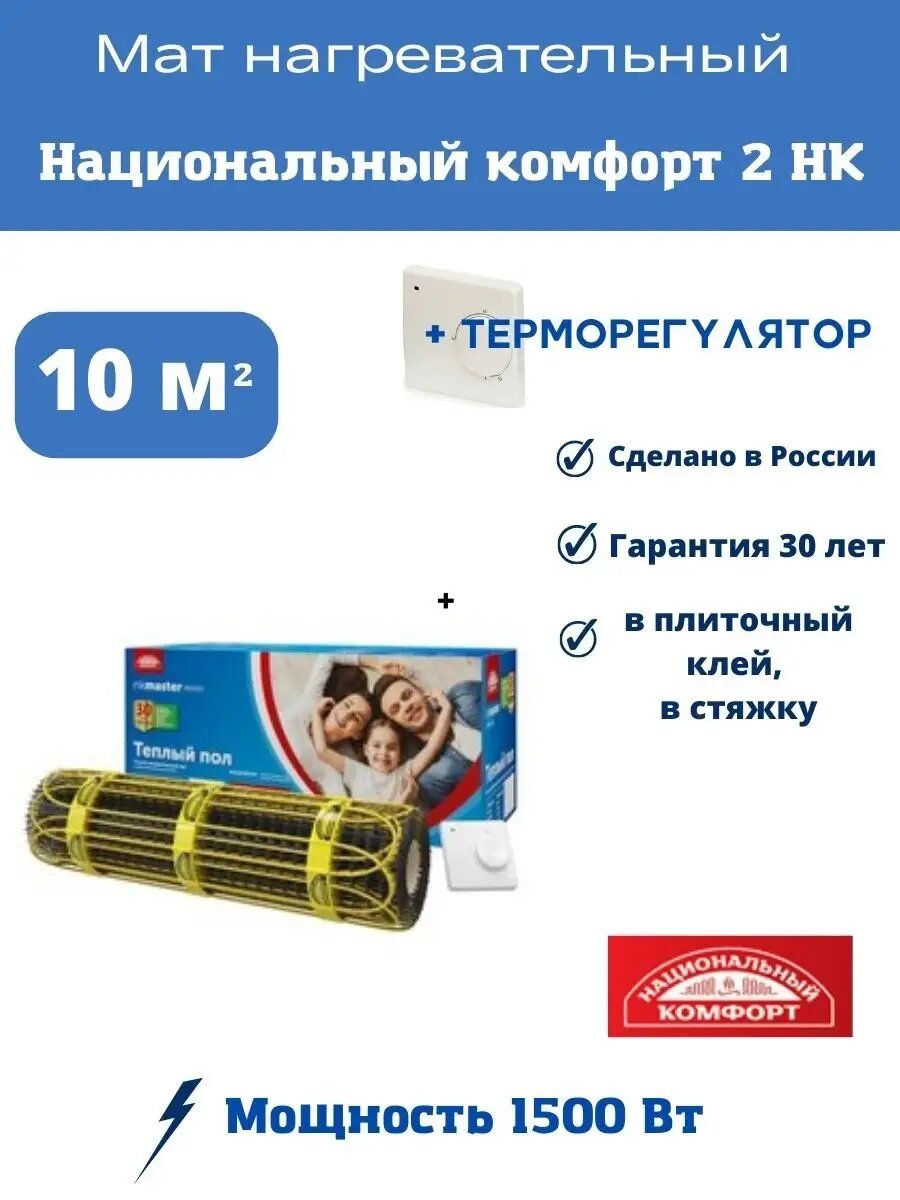 Мат нагревательный "Национальный комфорт" 2НК 1500 Вт/10,0 кв.м Мастер с терморегулятором (2228665)