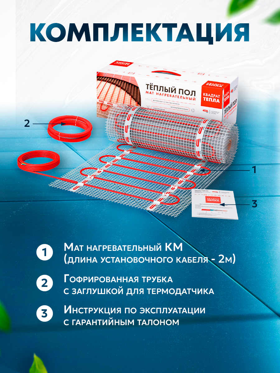 Нагревательный мат СТН Квадрат тепла КМ-300-2.0 150 Вт/м2 2 м2 300 Вт механический терморегулятор в подарок
