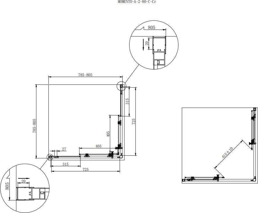 MOMENTO-A-2-80-C-Cr Душевой уголок
