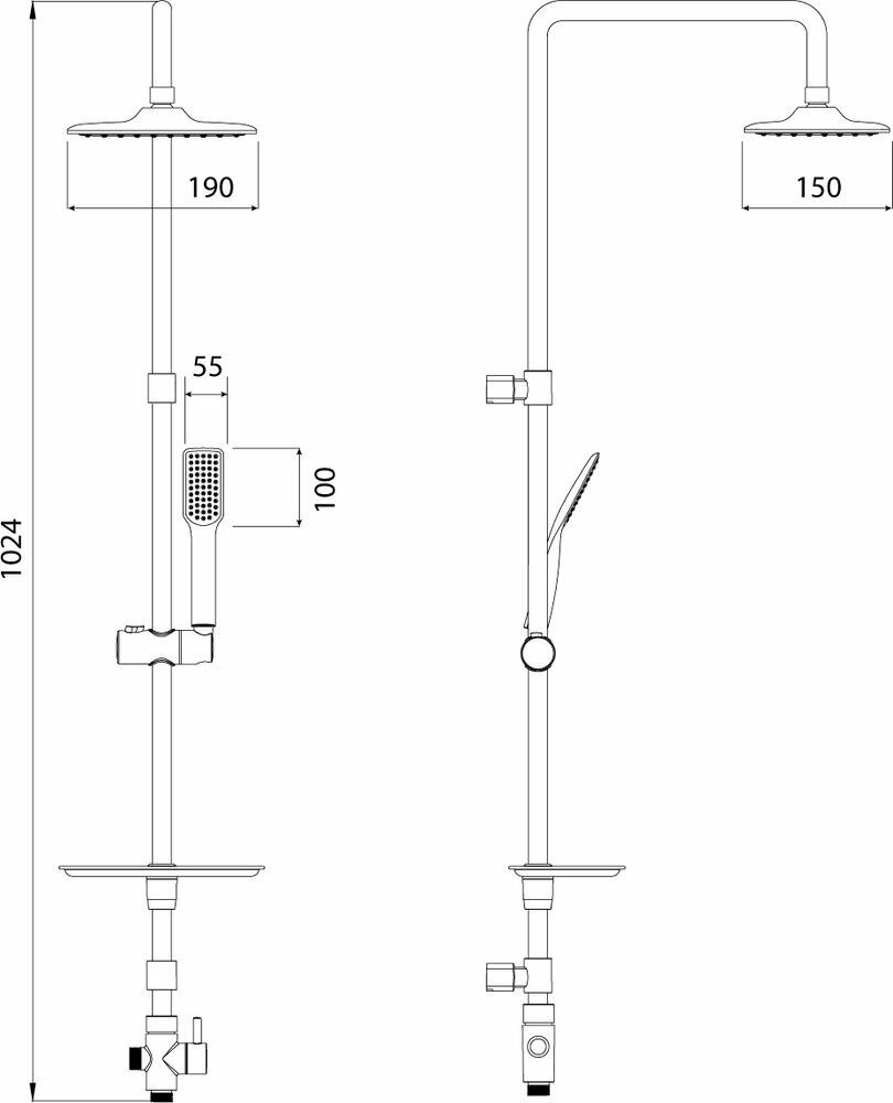 | Дополнительная информация | высота стойки для душа: 1024 мм; длина верхнего душа: 150 мм; ширина верхнего душа: 190 мм |
