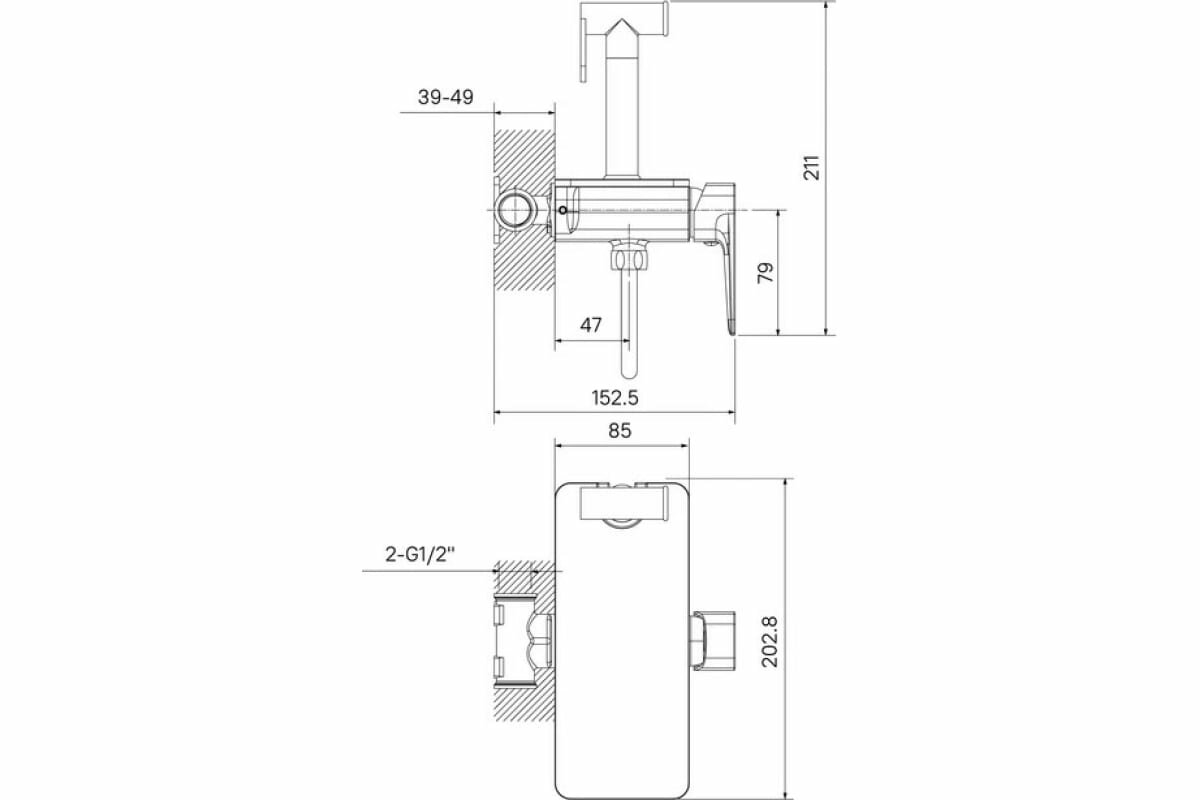 Встраиваемый смеситель с гигиеническим душем IDDIS Axes AXESBSHi08