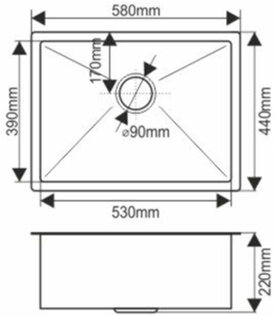 Мойка нерж врезная 580х440х200 т 3,0 сатин H5844 (+ сифон) AISI 304 MLN