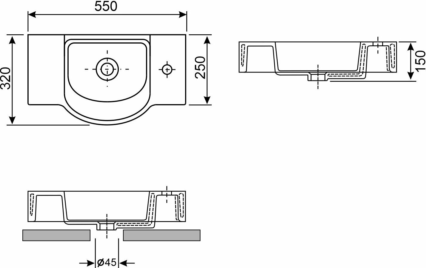 | Диаметр сливного отверстия | 45 мм |