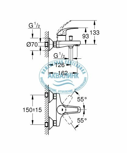 Смеситель для ванны BauCurve, настенный монтаж GROHE 23599000
