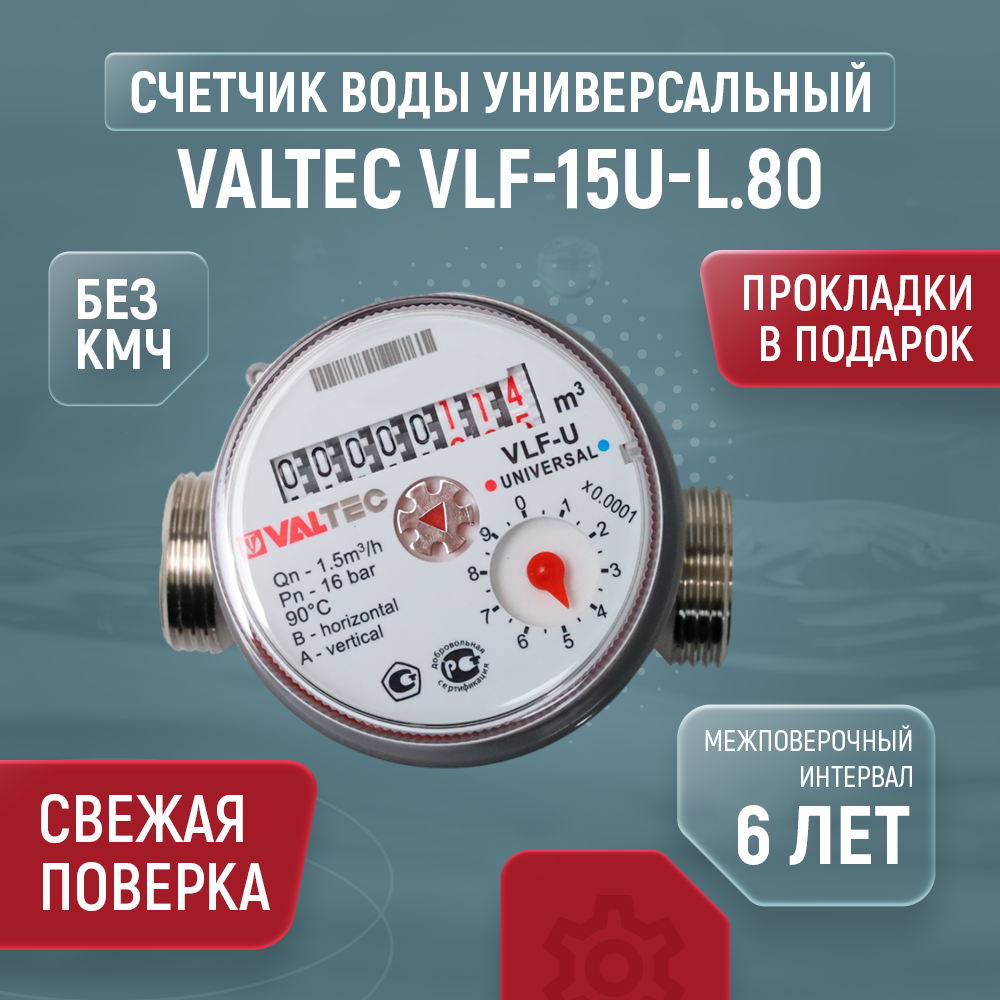 Счетчик воды VALTEC VLF-15U-L.80, L80, Ду15