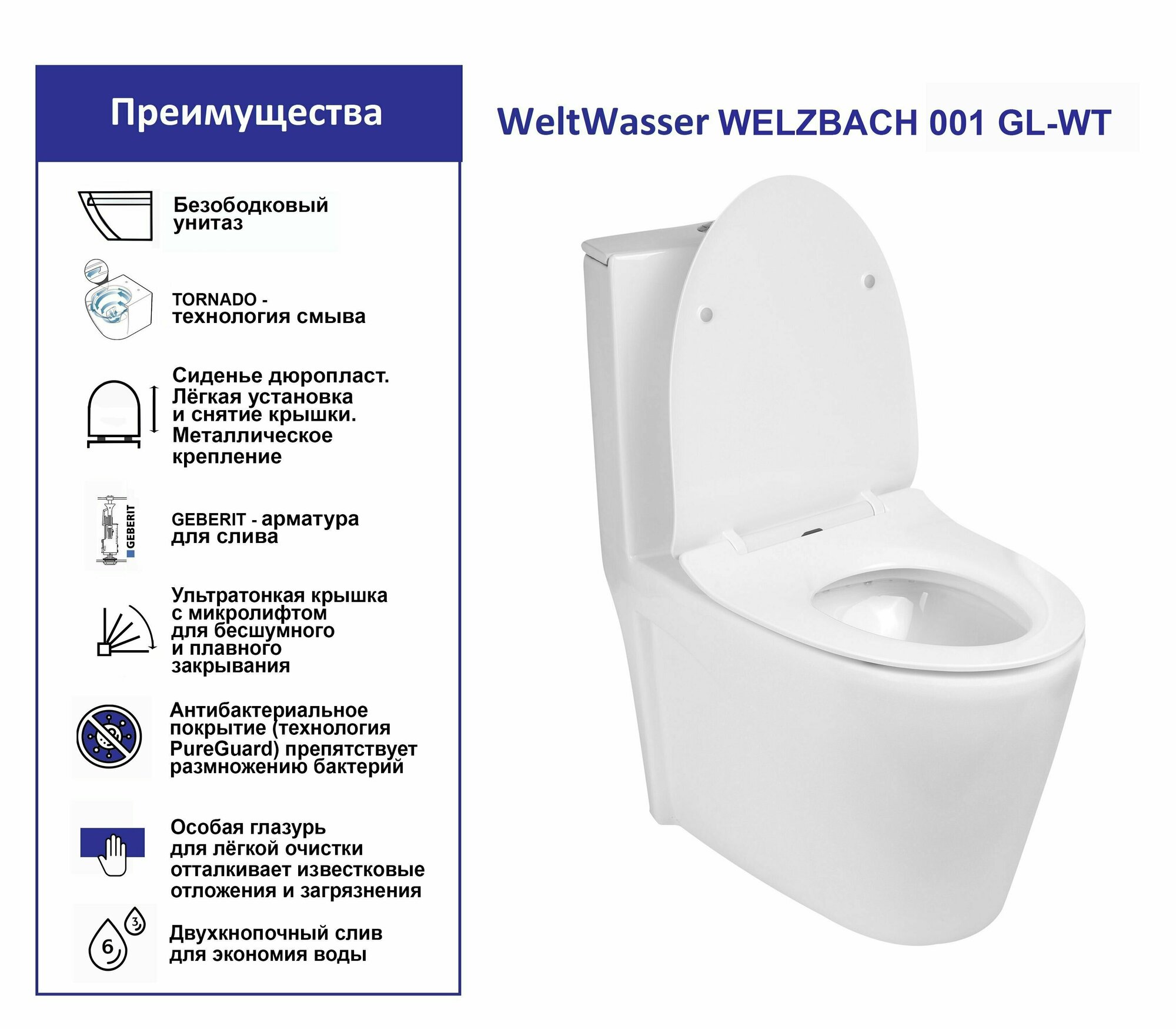 WeltWasser Унитаз-моноблок WELZBACH 001 GL-WT с сиденьем микролифт WeltWasser