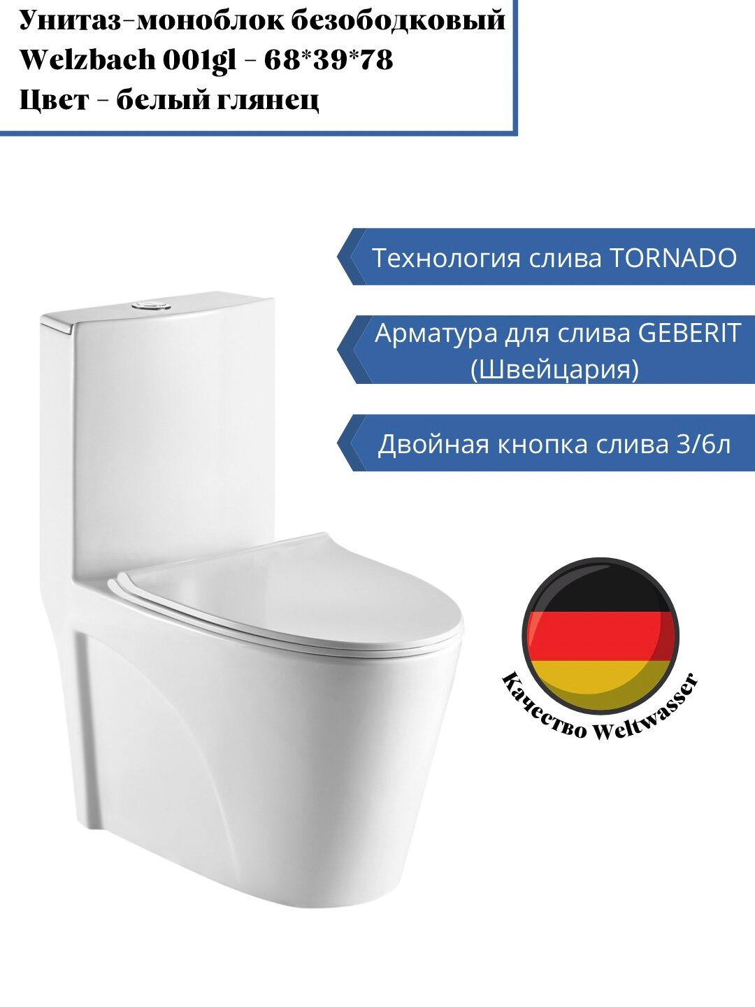 Унитаз-моноблок WeltWasser 68x78x39 WW WELZBACH 001 GL-WT 10000003805 белый глянец