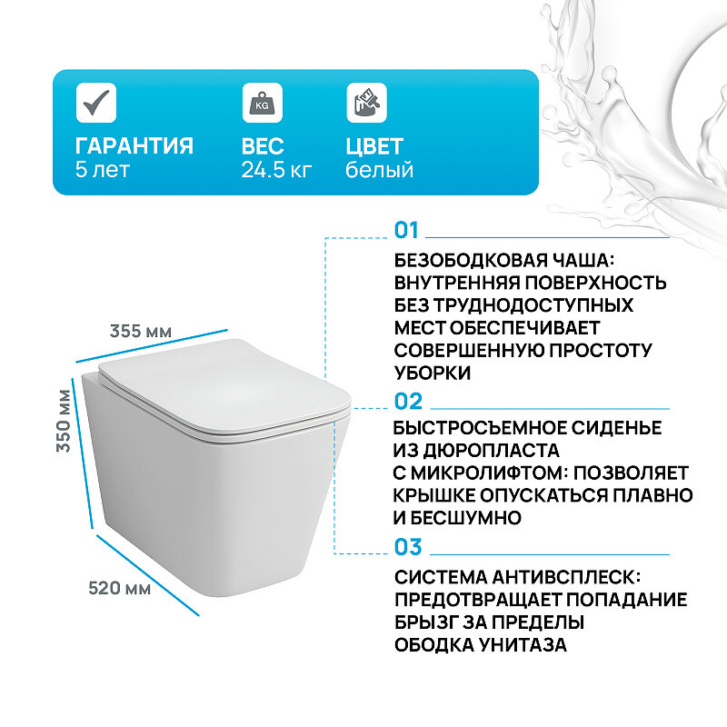 | Дополнительная информация | для монтажа с системами инсталляции (приобретаются отдельно); быстросъемное сидение |
