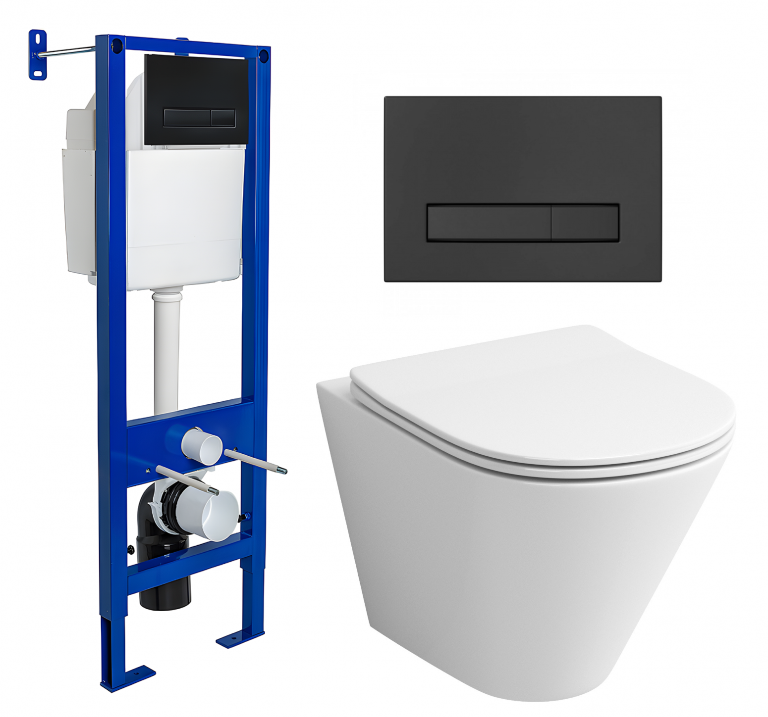 Комплект 3 в 1 инсталляция Grohe Rapid SL + Унитаз подвесной Grossman GR-4477S + кнопка черная