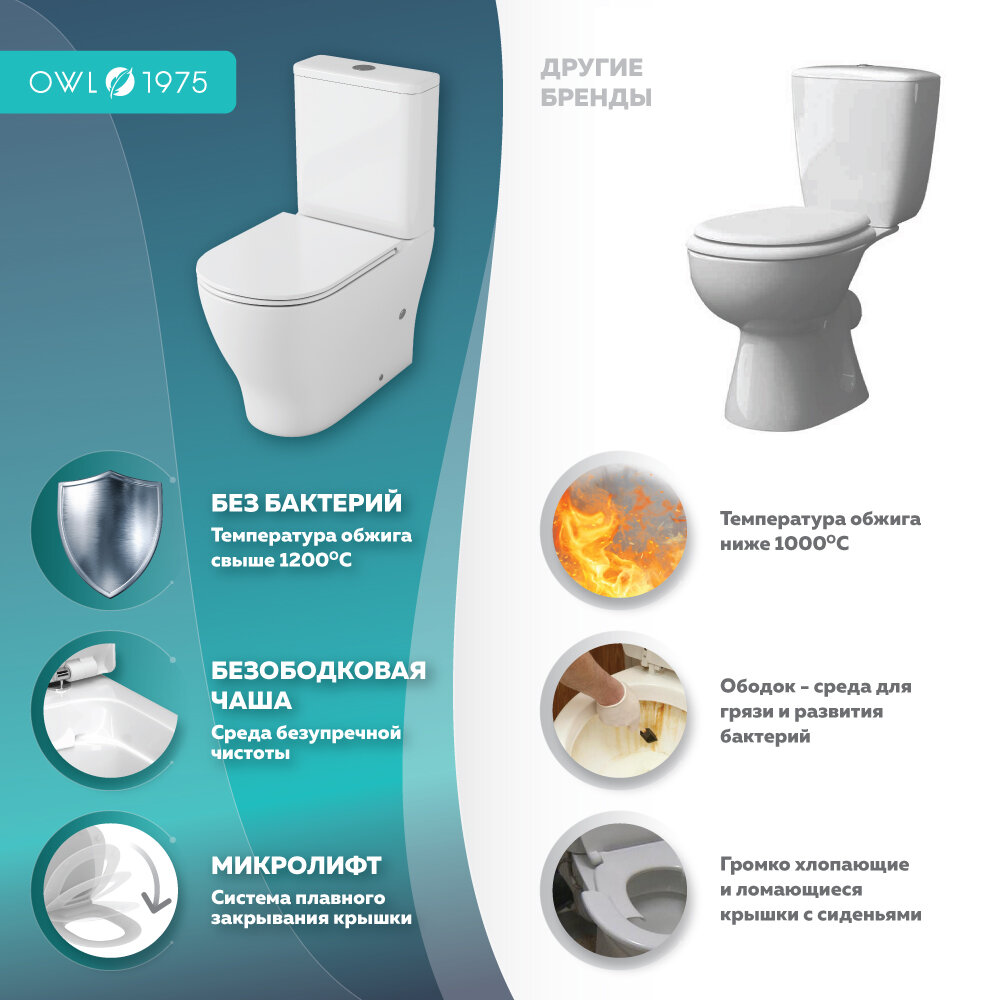 Купить Чаша для унитаза-компакта OWL 1975 Tid Cirkel-G OWLT190702 микролифт