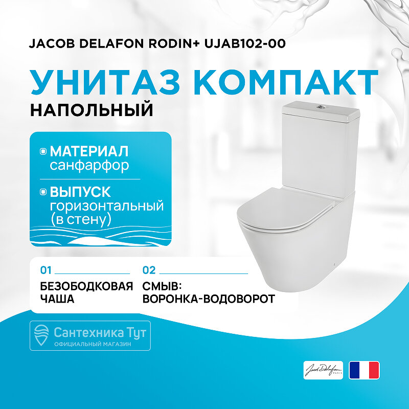 Унитаз Jacob Delafon Rodin+ Горизонтальный Выпуск Безободковый сиденье: Дюропласт микролифт тонкое сиденье