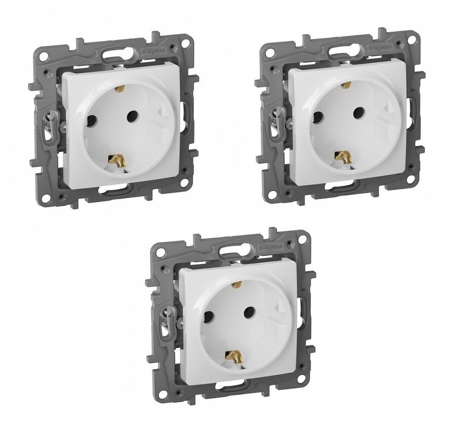3шт. - ETIKA Розетка с заземлением белая / Legrand; арт. 672221; оригинал / - комплект 3шт
