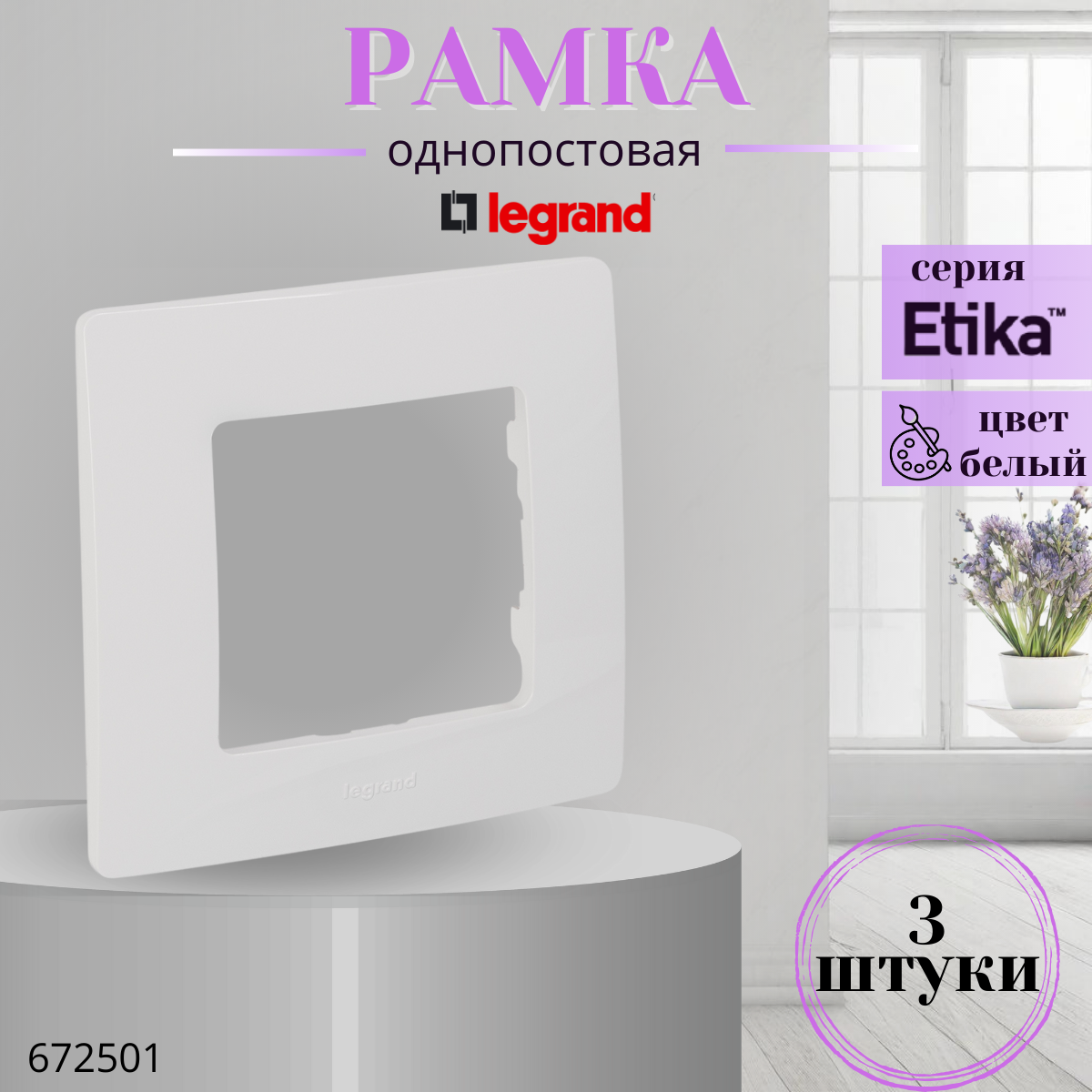Купить Рамка электроустановочная Legrand Etika 1 пост, белая 672501 (комплект из 3 шт)