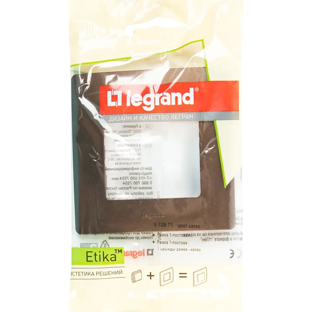 Купить Рамка для розеток и выключателей Legrand Etika 1 пост, цвет какао