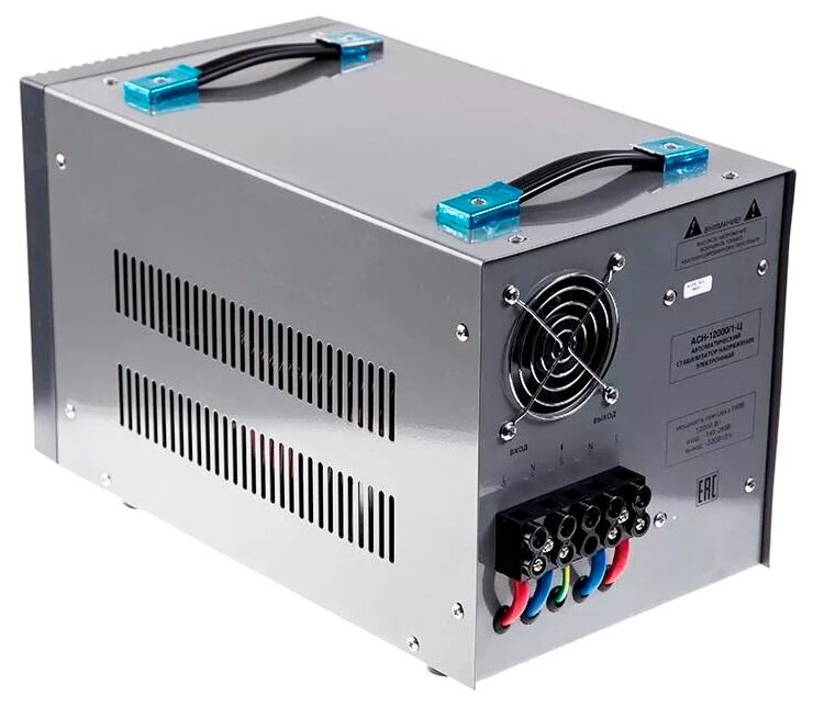 | Отзыв: | Стабилизатора на 12 КВт вполне достаточно, чтобы обеспечить стабильным 220-вольтовым напряжением весь дом. Но я бы все же не стал подключать через него нагреватели и мощные плиты с духовками. Для них на крайняк есть Bypass. Для такой мощности стабилизатор не такой уж тяжелый, хотя разработчики предусмотрели 2 ручки для его переноски. Клемы для подключения расположены сзади, но почему-то сверху под вентилятором. |