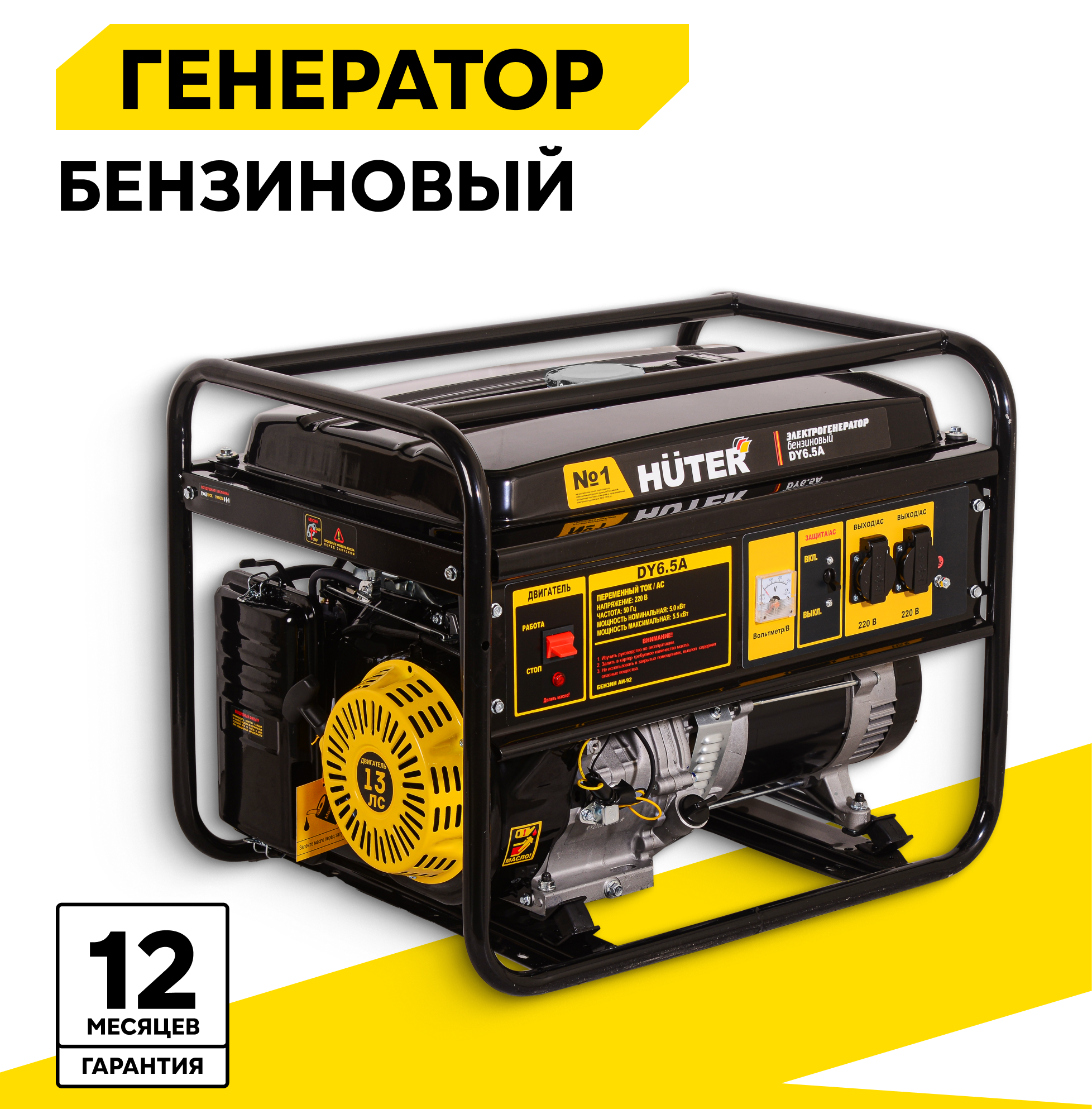 Бензиновый генератор HUTER DY6.5A (5000 ВТ)