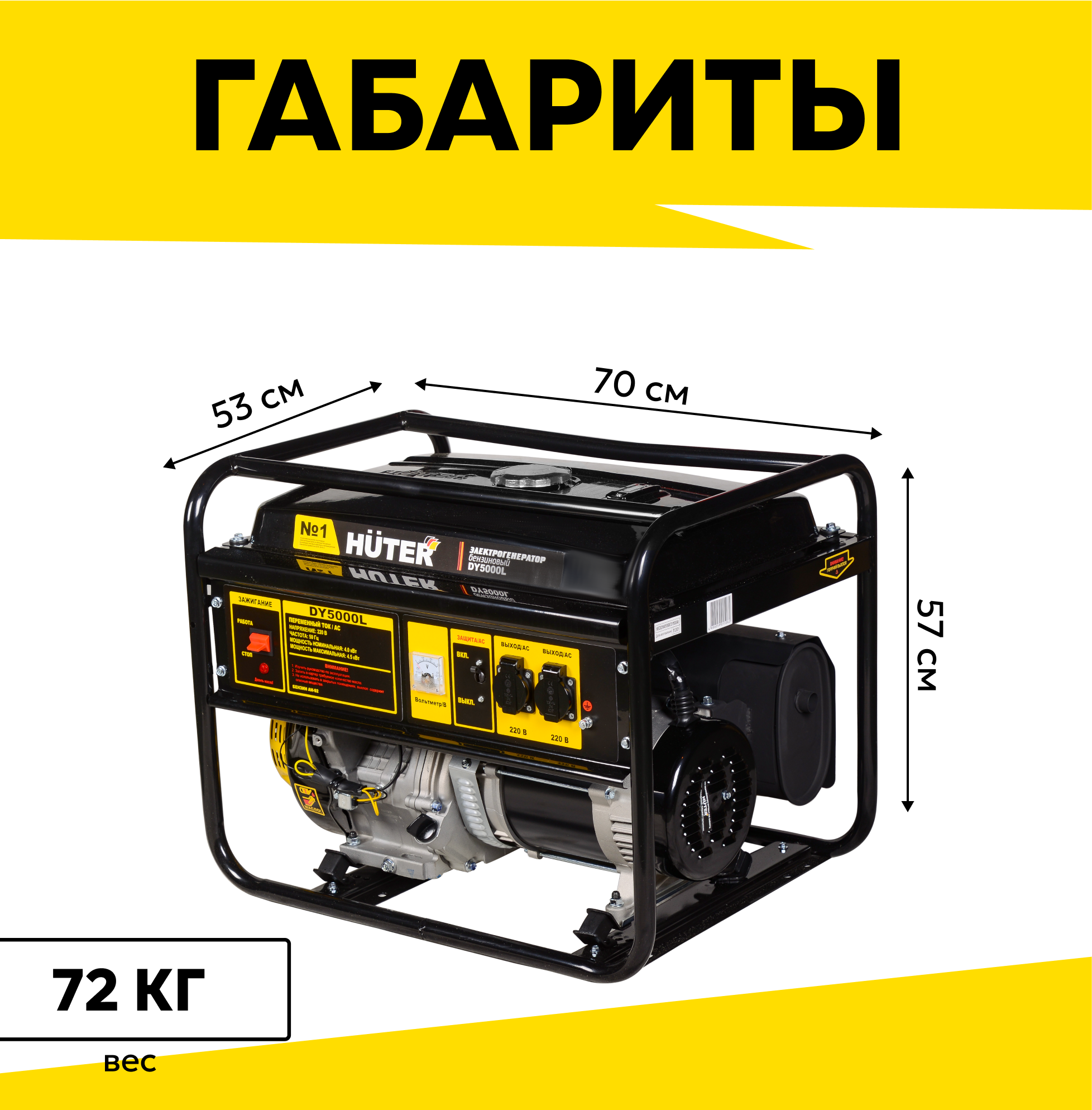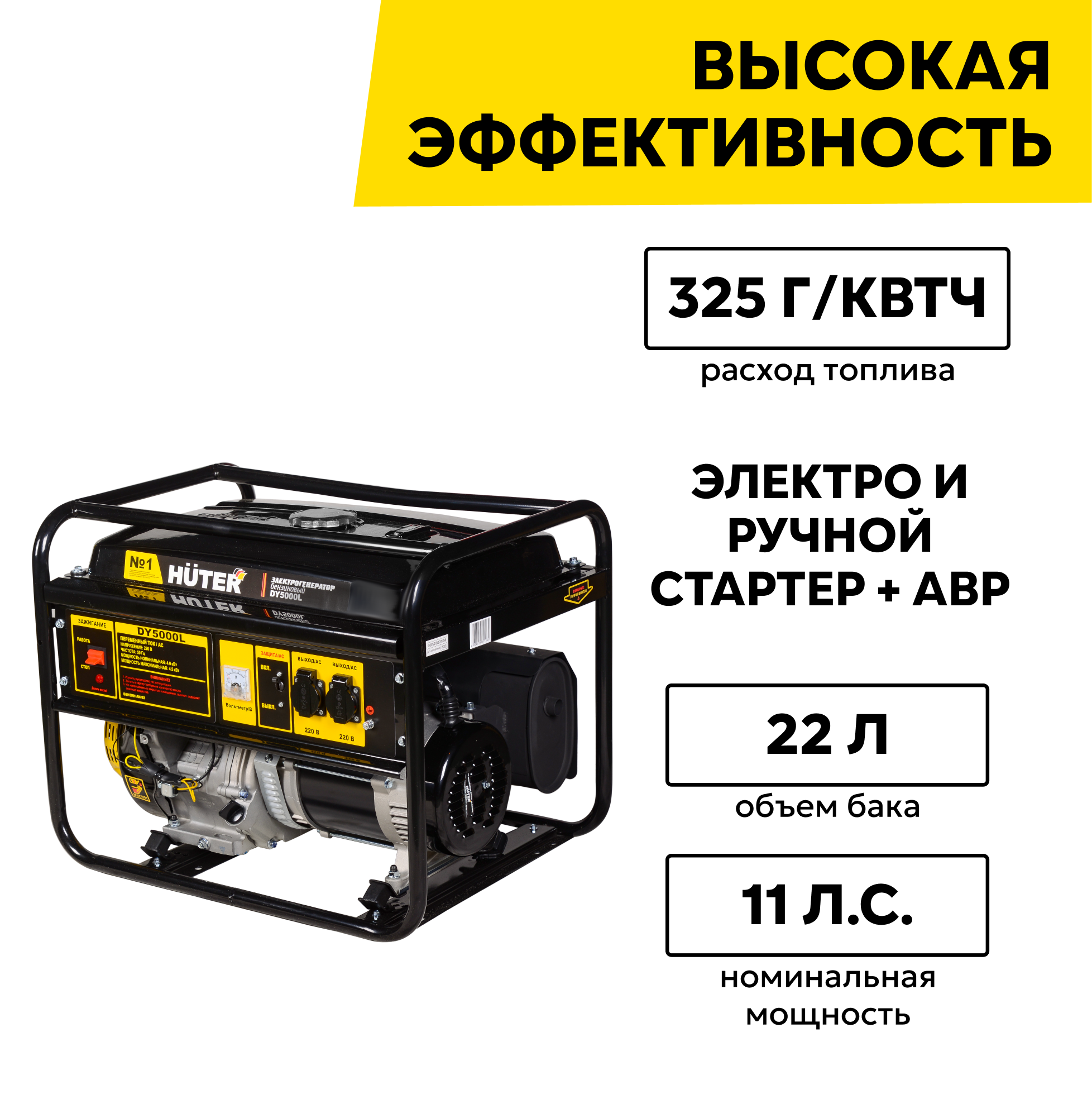Генератор бензиновый HUTER DY5000L с ручным запуском, максимальная мощность 4500 Вт интересное:
