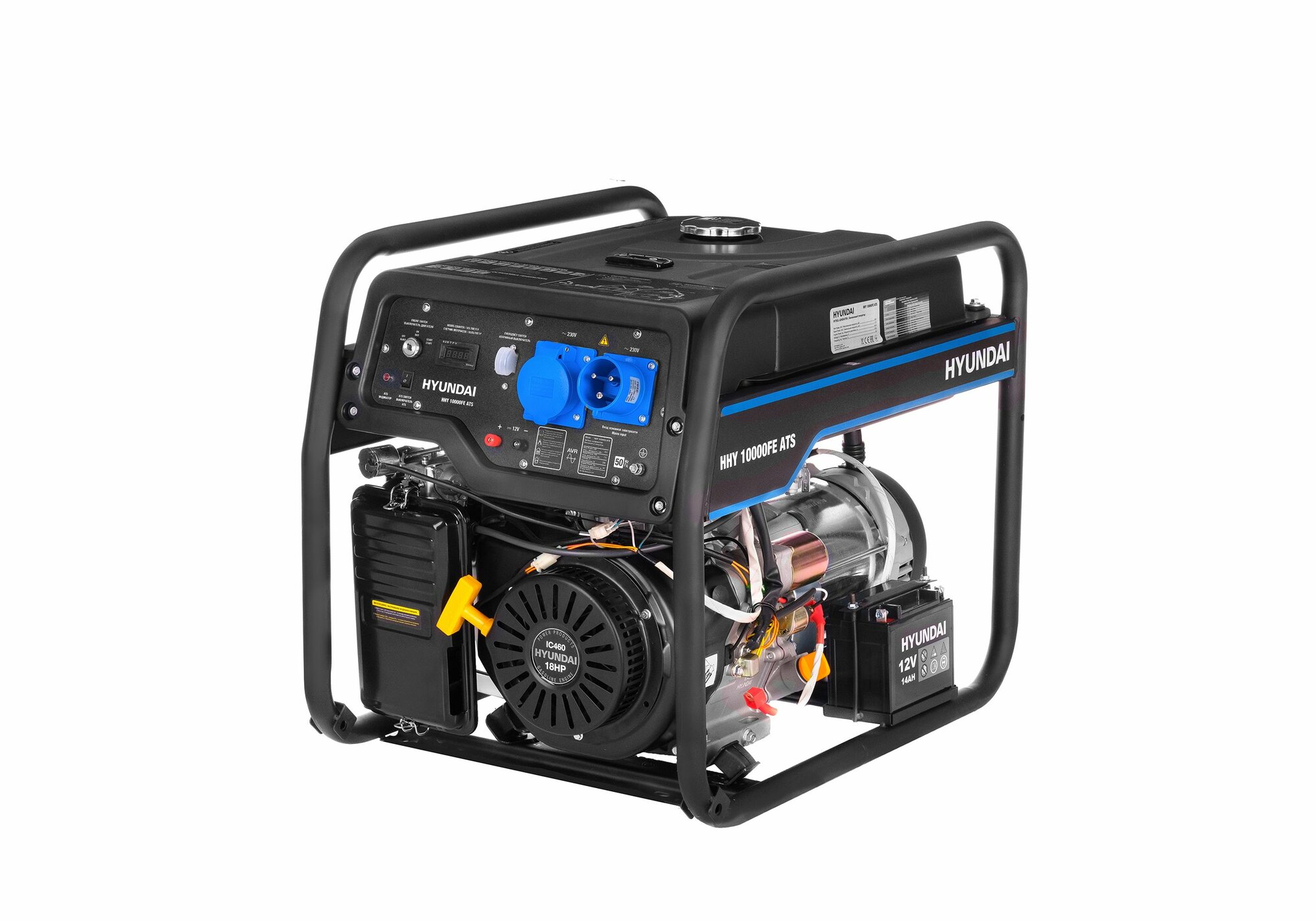 HYUNDAI [HHY 10000FE ATS] Генератор бензиновый { Запуск ручной/электро/авто, HYUNDAI IC460, 4-х такт, 18 л.с., 460 см3, 230В/50Гц, 8,0 кВт/nom 7,5кВт, Вес 89,5 кг }