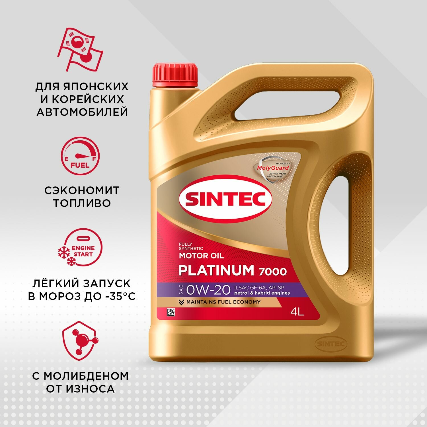 Синтетическое моторное масло SINTEC Platinum SAE 0W-20 ILSAC GF-6 API SP, 4 л, 4 кг, 1 шт