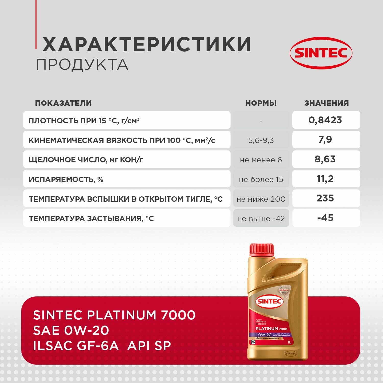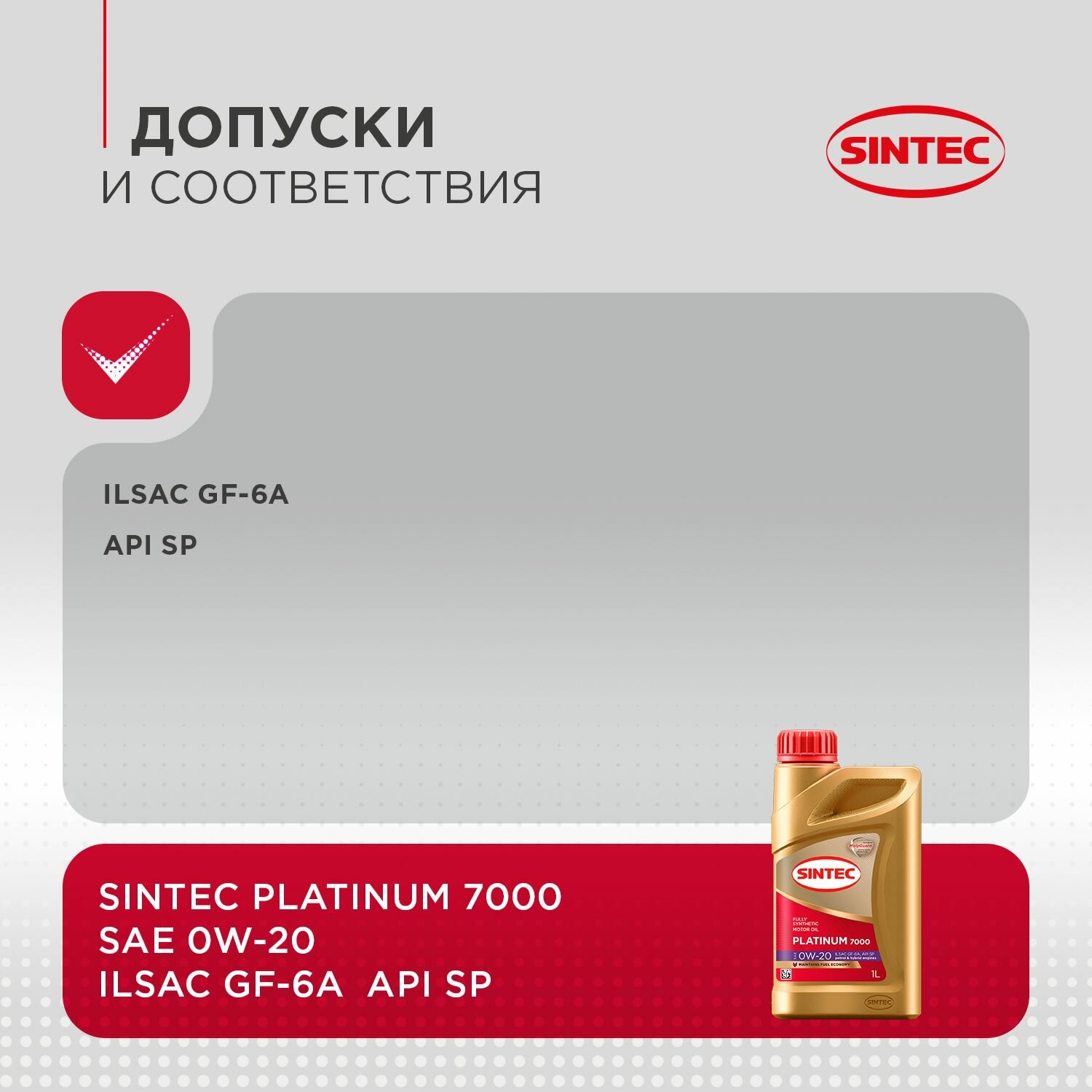 масло sintec 0w20 platinum 7000 api sp ilsac gf-6 4л син 801987/600163