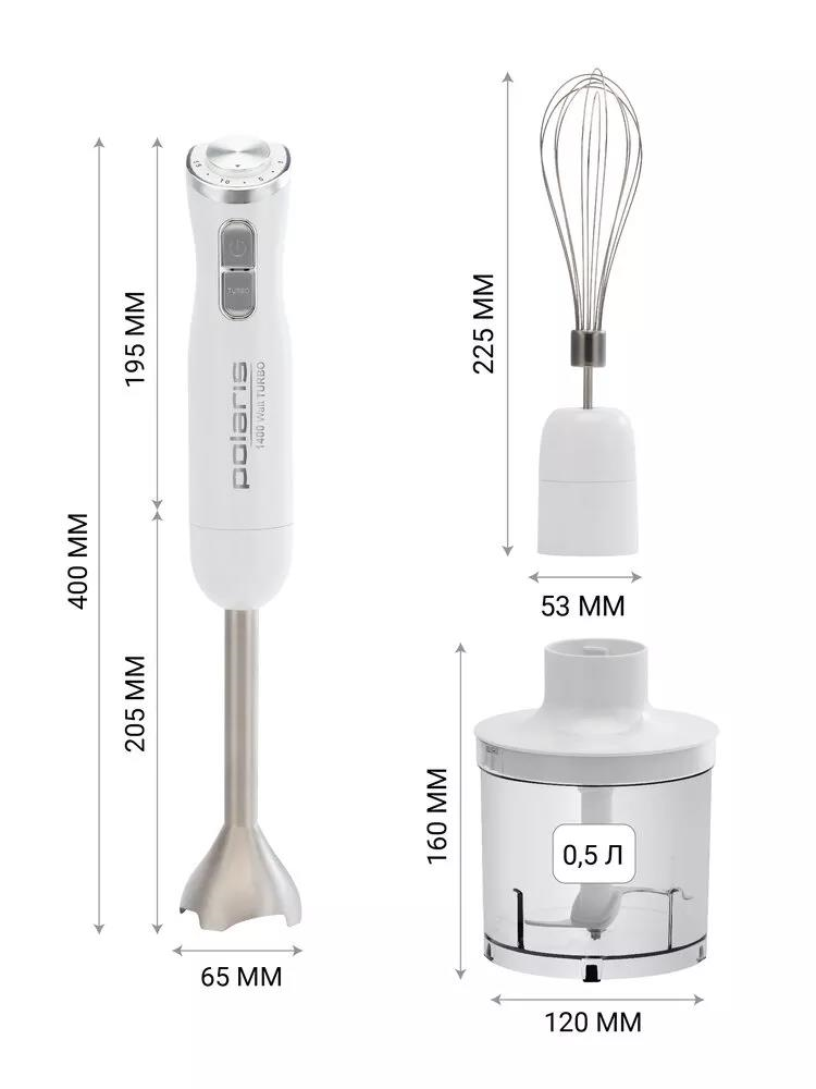 Блендер Polaris PHB 1476, погружной, 1400 Вт, 0.5/0.7 л, 15 скоростей, режим"турбо", белый Polaris 9
