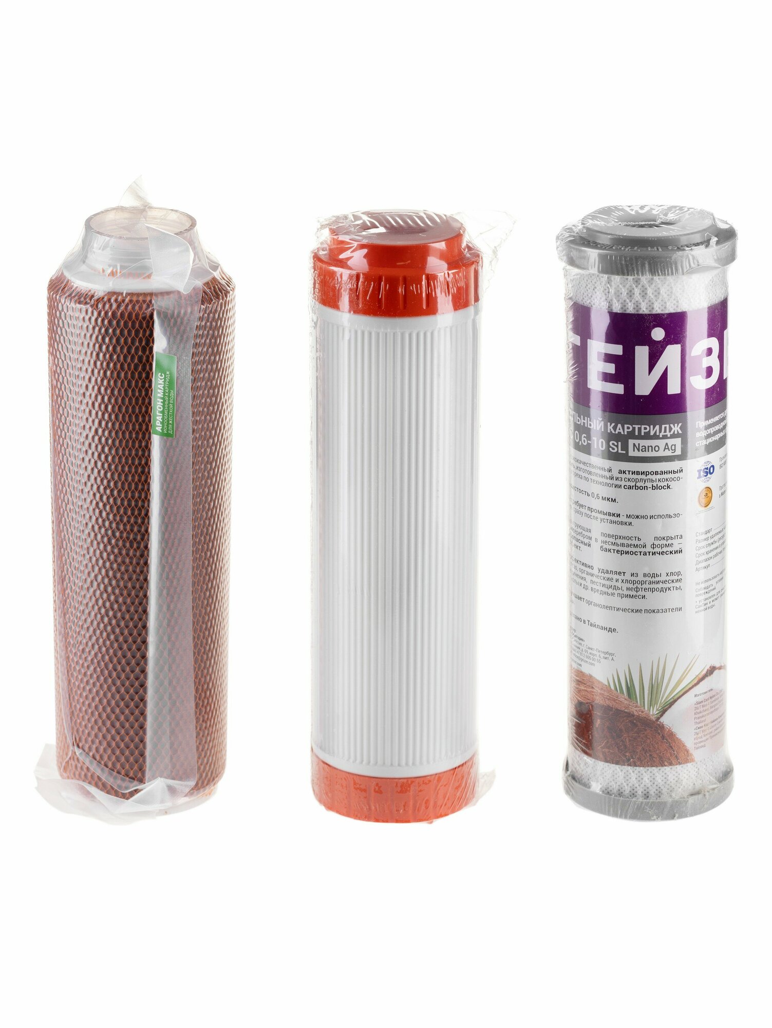 Комплект сменных картриджей Гейзер №17, для стационарных трехступенчатых фильтров, для сверхжесткой воды, 3 шт