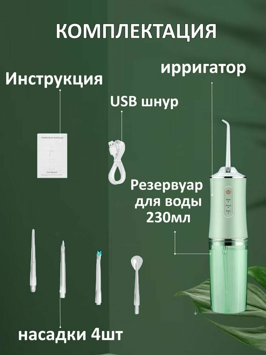 Ирригатор для зубов и полости рта , портативный для повседневной и деликатной чистки , уход за деснами, зеленый интересное: