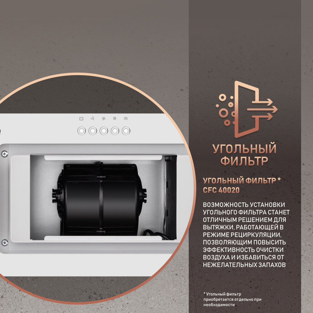 Кухонная встраиваемая вытяжка Weissgauff Antlia 850 WH, Низкий уровень шума