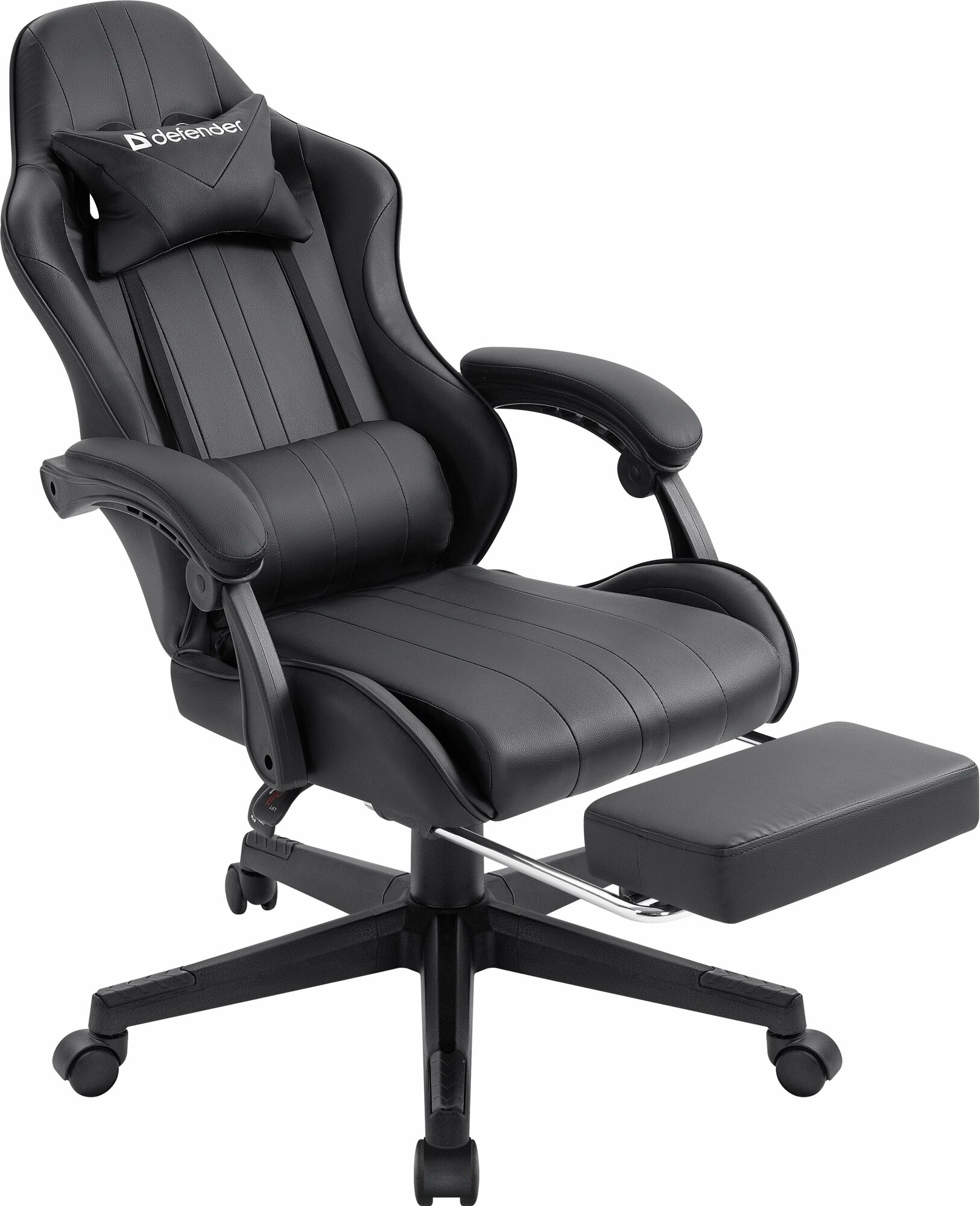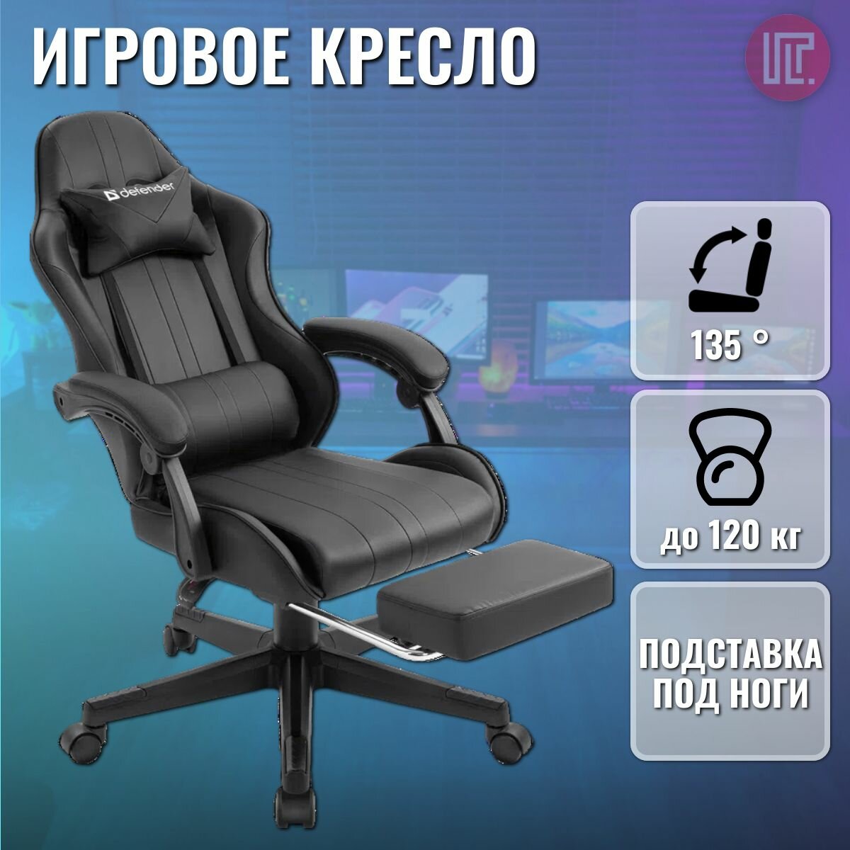 Компьютерное игровое кресло Defender Rock из эко-кожи с регулировкой высоты и подставкой для ног, на металлической раме, 2 подушки.