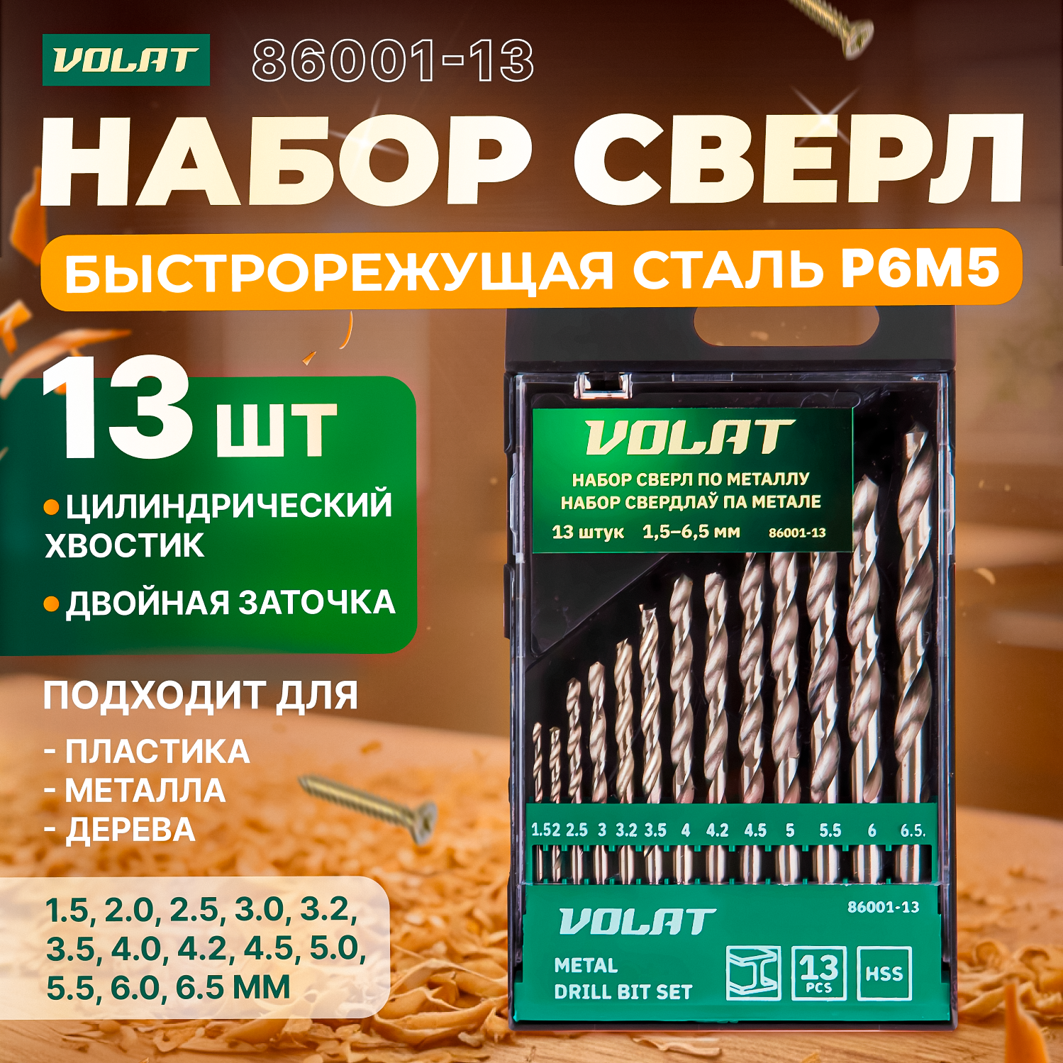 СохранитьНабор сверл по металлу HSS 1,5-6,5мм 13 штук волат (86001-13) интересное: