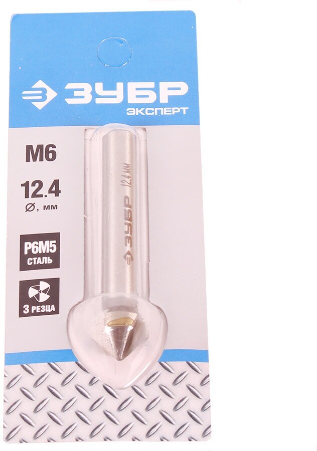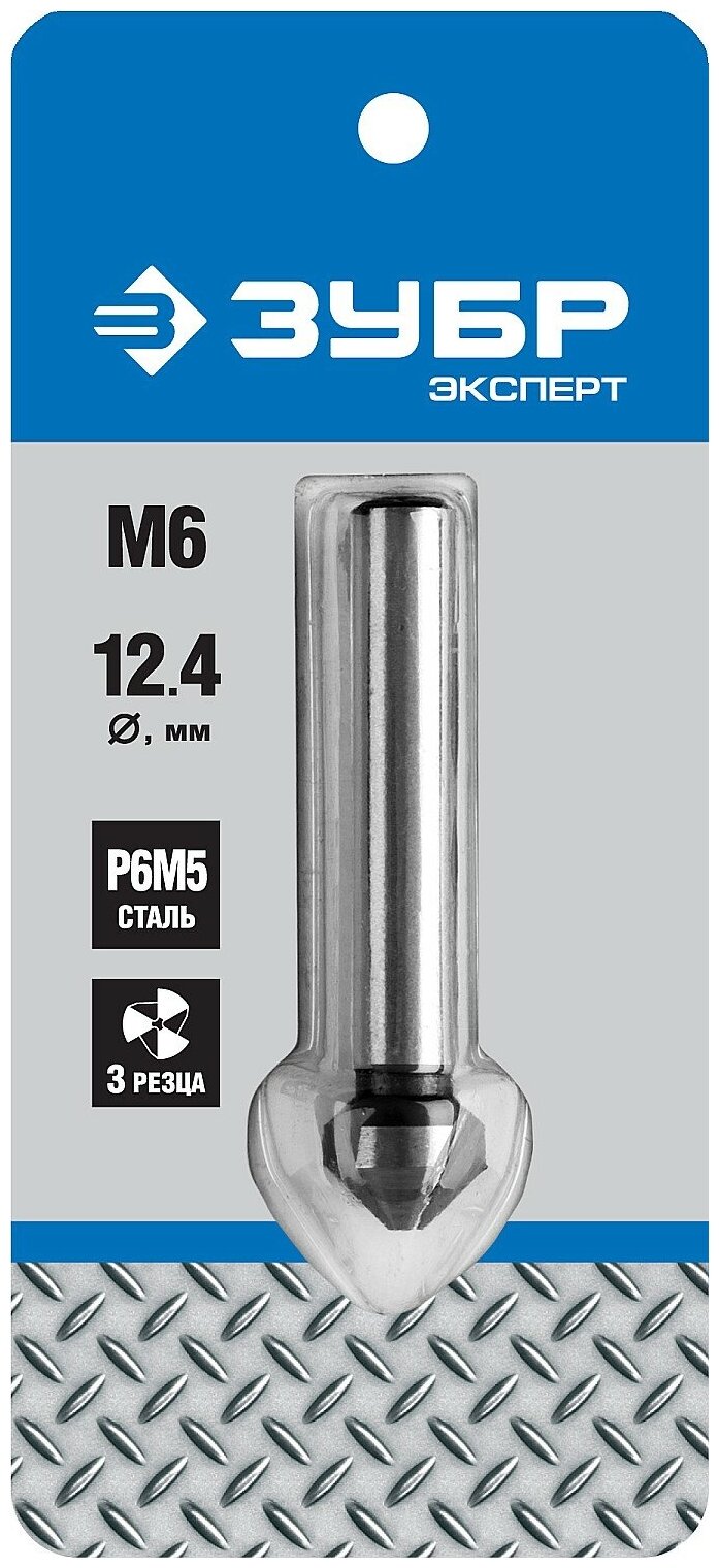 Зенкер Зубр 29730-6 Эксперт конусный стальP6M5 d12.4х56мм d8мм для раззенковки М6 29730-6