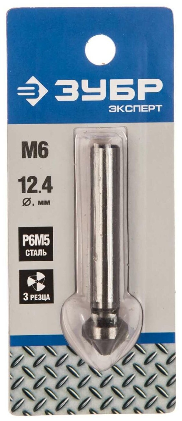 Зенкер ЗУБР 29730-6 эксперт конусный стальP6M5 d12.4х56мм d8мм для раззенковки М6