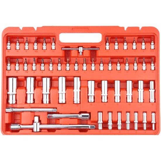 Набор инструментов для автомобиля Goodking 216 предметов 1/4" 3/8" 1/2" трещотка 72 зуба, динамометрический ключ, гаечные ключи, шестигранные ключи, биты, торцевые головки