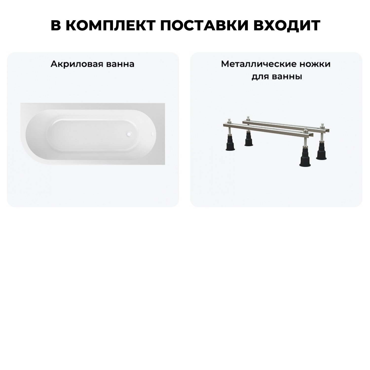 Пристенная ванна акриловая 170x75 Lavinia Boho Art S1-37080075 в наборе 2 в 1: полукруглая ванна 170 x 75 см, ножки
