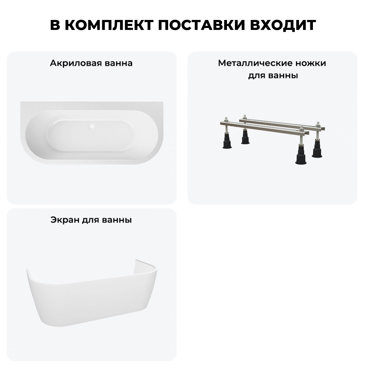 Купить Пристенная ванна акриловая 170x75 Lavinia Boho Art S2-37080075 в наборе 3 в 1: полукруглая ванна 170 x 75 см, ножки, экран