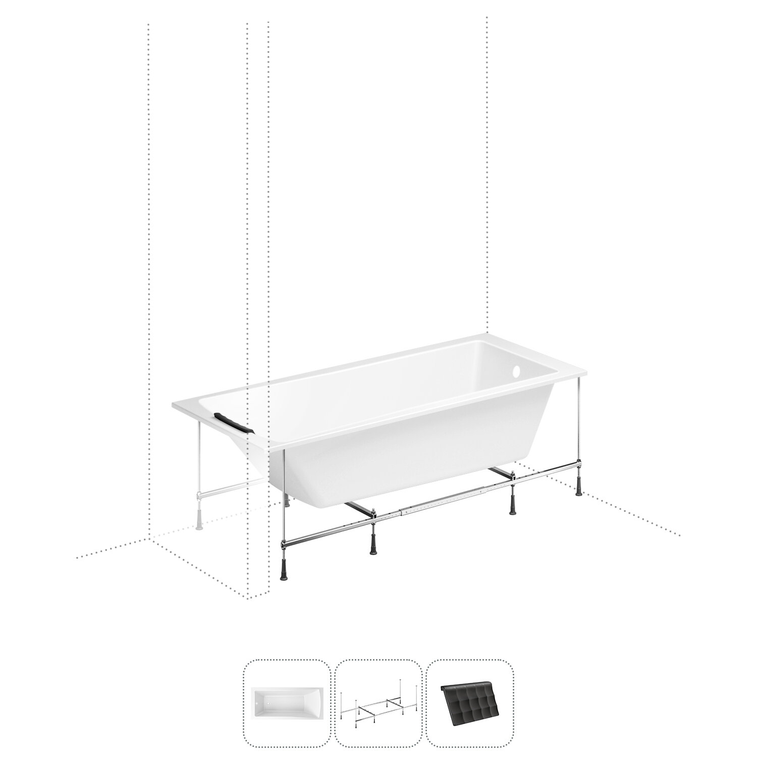 Акриловая ванна 170х70 см Lavinia Boho One набор 3 в 1: прямоугольная ванна, металлический каркас, подголовник