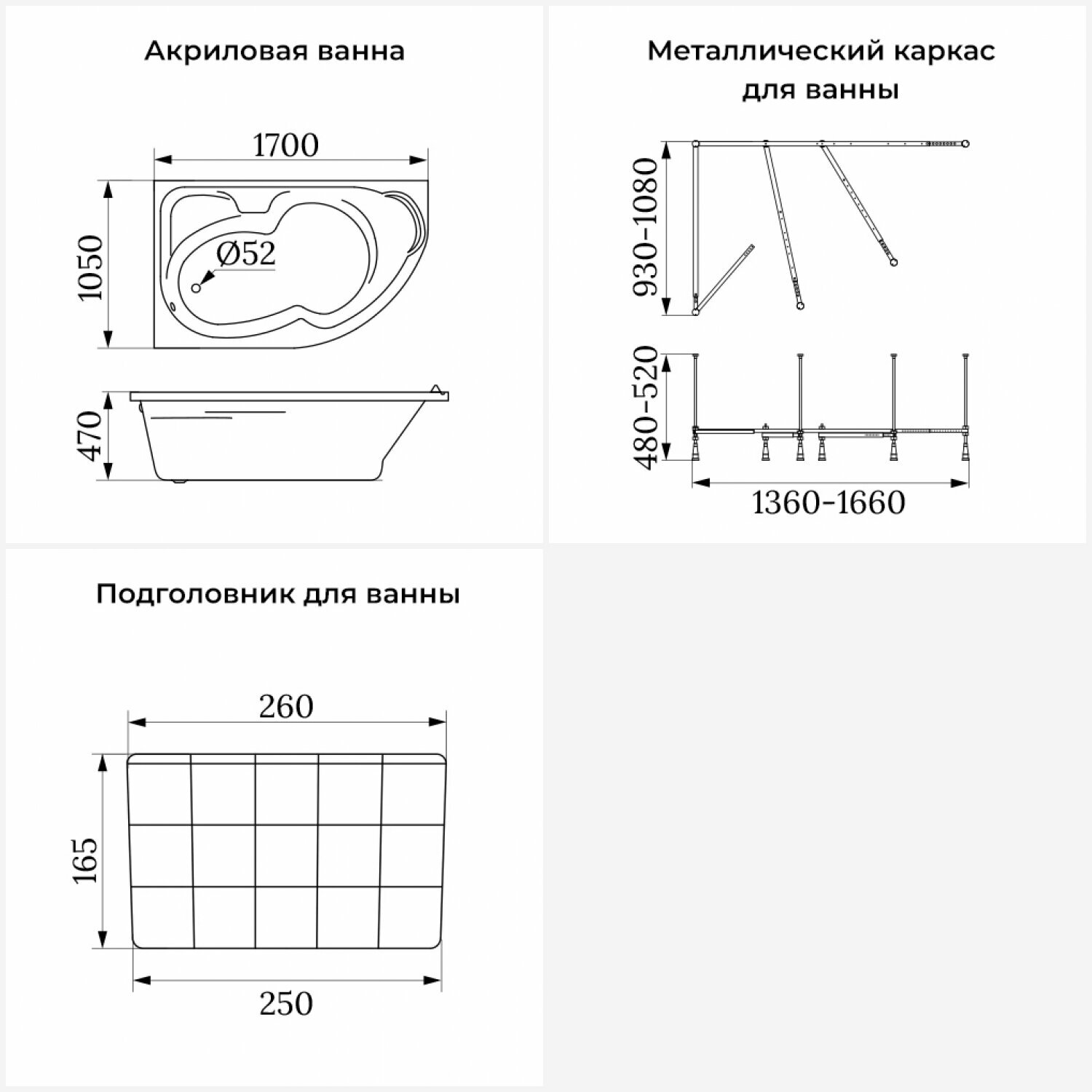 Ванна угловая акриловая 170 х 105 с каркасом Lavinia Boho Grance Hill S1-370317PR в наборе 3 в 1: угловая ванна 170х105 см (правый разворот), металлический каркас, мягкий подголовник