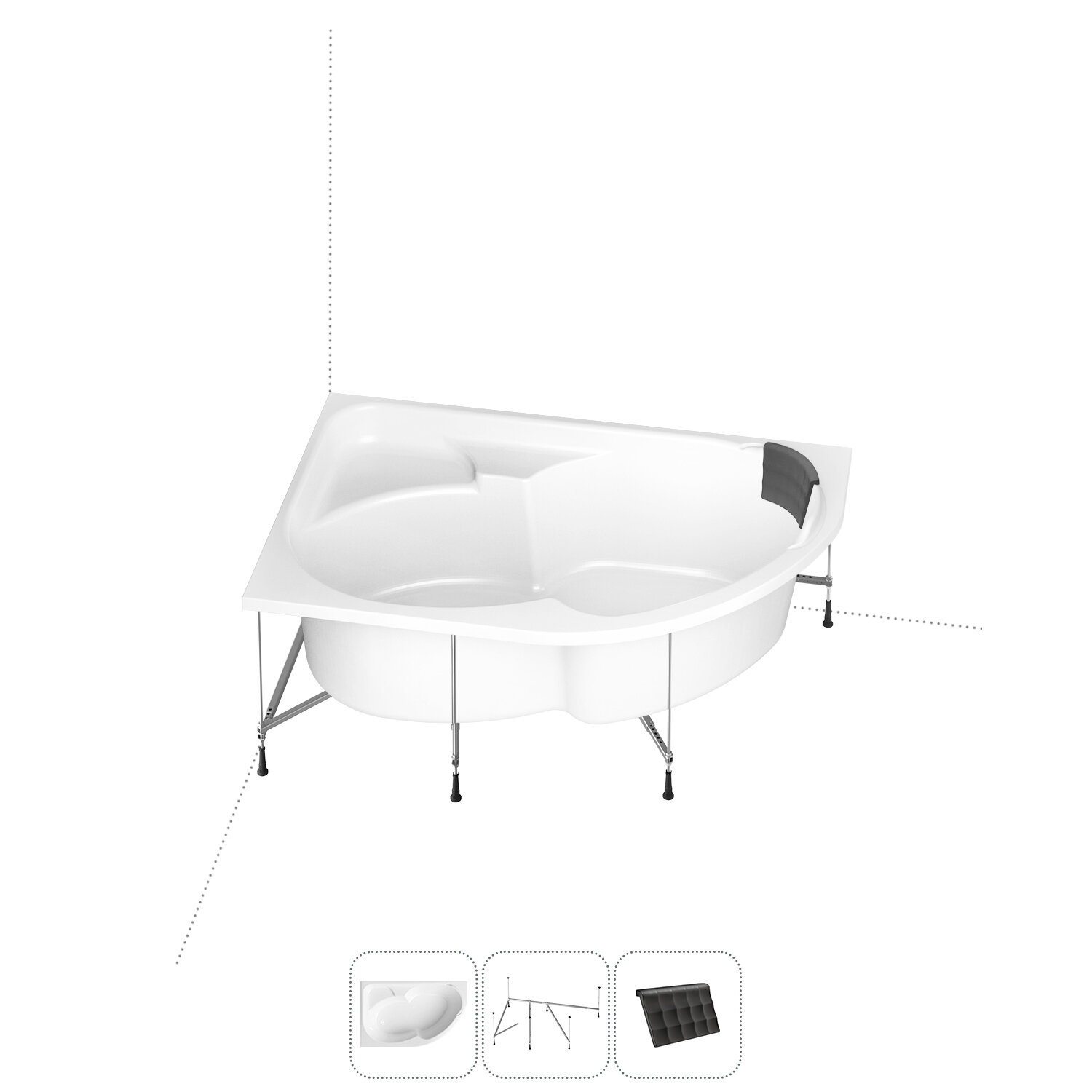 Акриловая ванна 170х105 см Lavinia Boho Grance Hill набор 3 в 1: угловая ванна (правый разворот), металлический каркас, подголовник