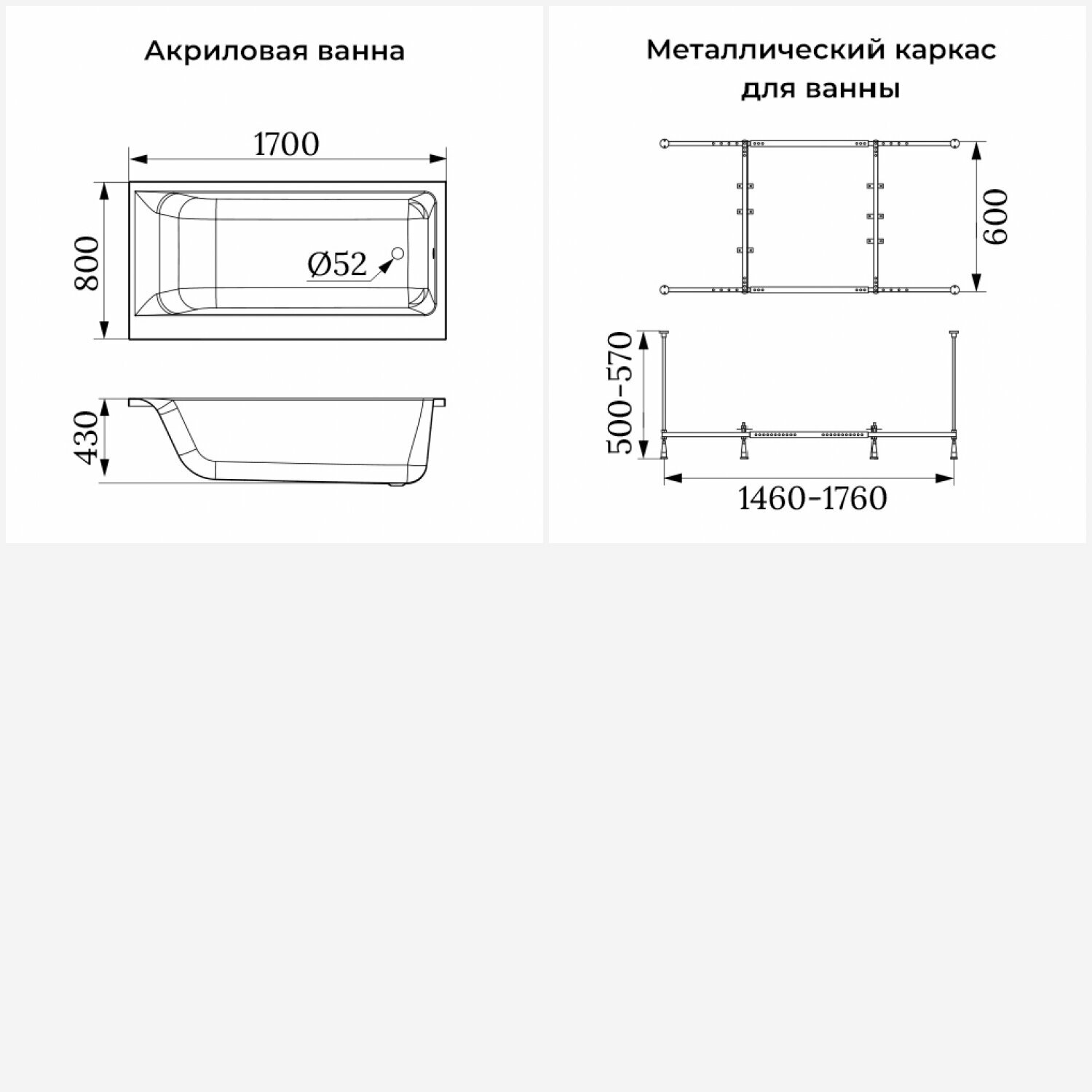 Акриловая ванна 170х80 см Lavinia Boho Catani набор 2 в 1 S1-3712170L: ассиметричная ванна (левый разворот), усиленный металлический каркас