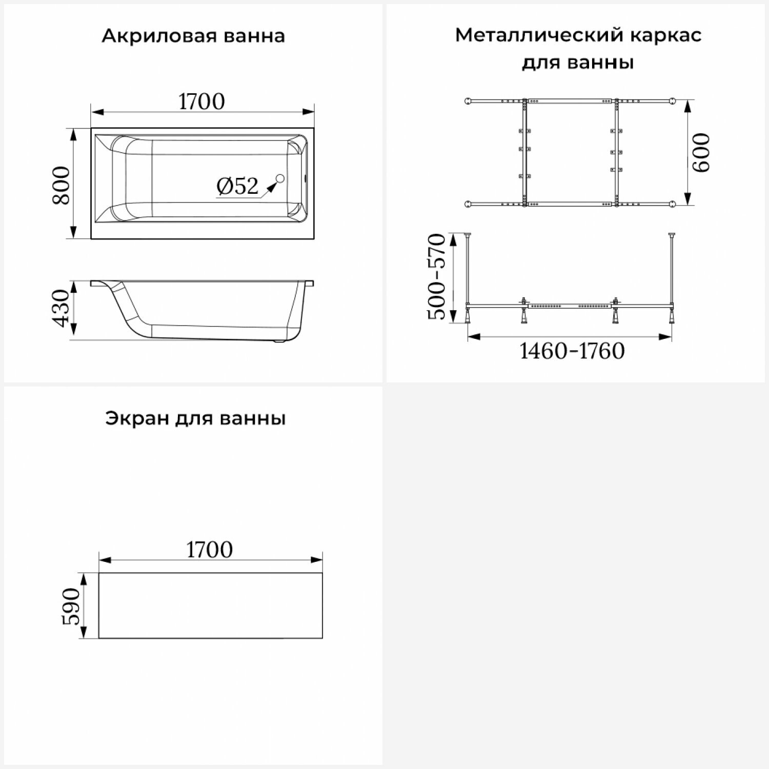 Акриловая ванна 170х80 см Lavinia Boho Catani набор 3 в 1 S2-3712170L: ассиметричная ванна (левый разворот), металлический каркас, лицевой экран