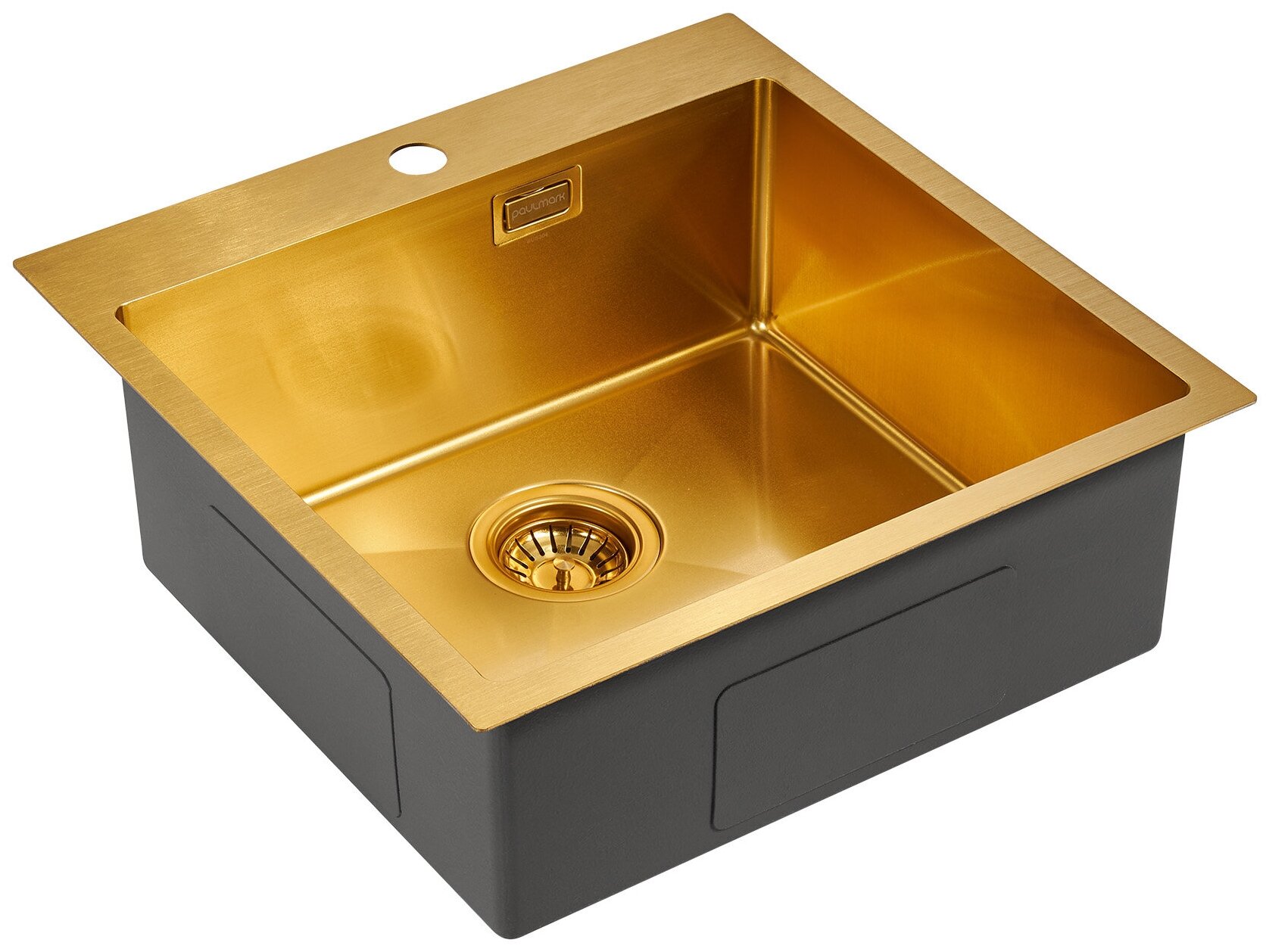 Купить Кухонная мойка из нержавеющей стали AISI304 Paulmark VELTEN 51, 510х510 мм, PVD и шумопоглащающее покрытие, врезная, подстольная и вровень со столешницей, цвет брашированное золото